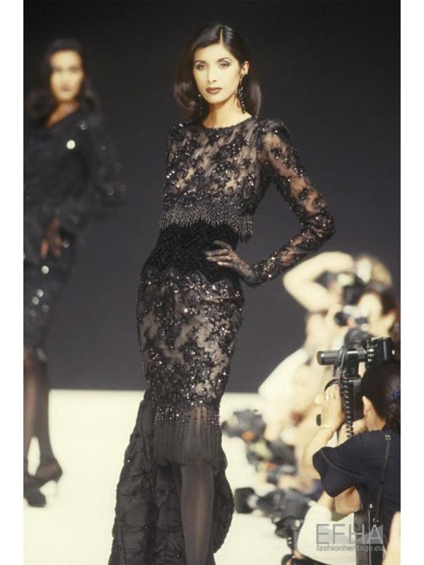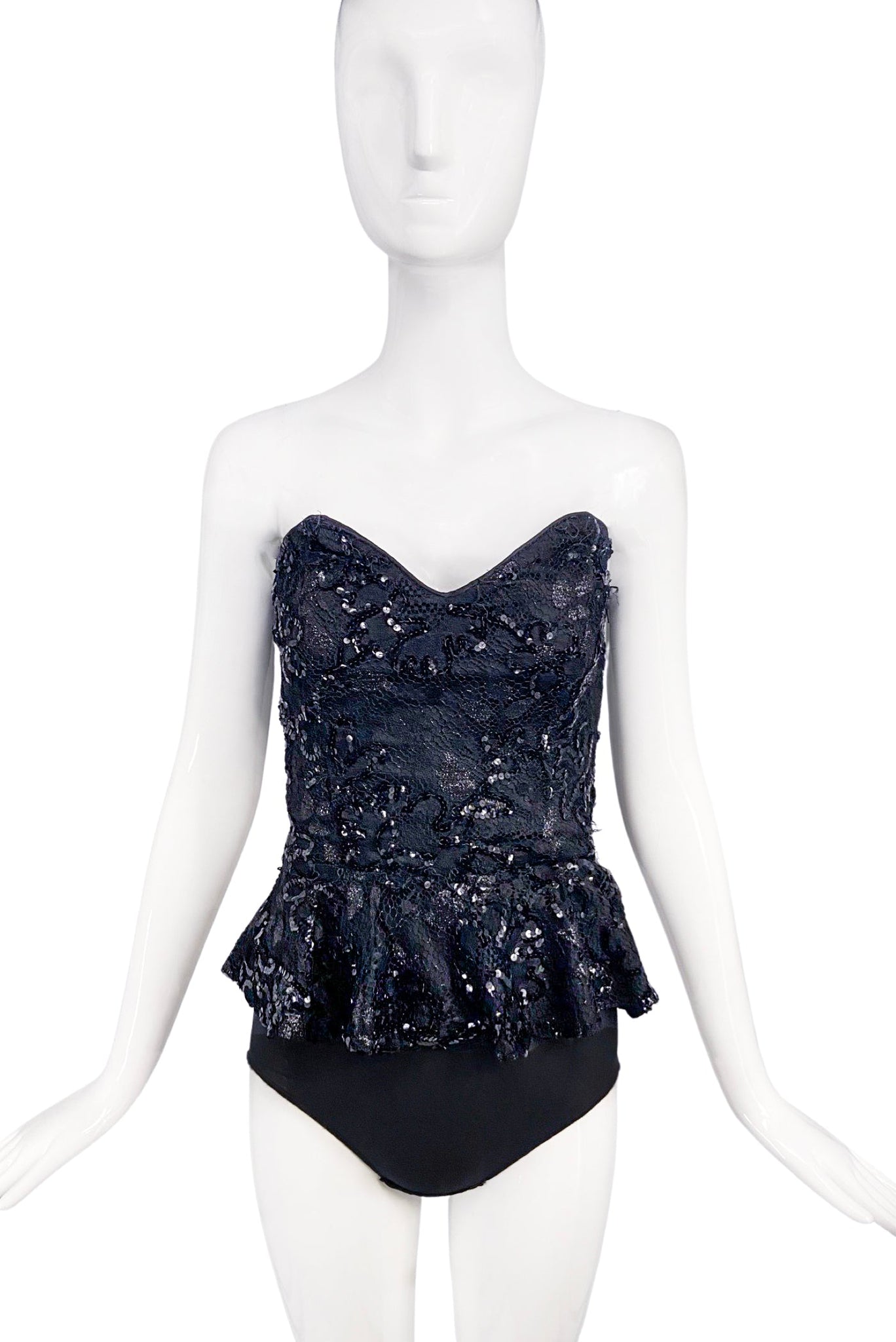 Emanuel Ungaro Black Lace Sequin Embroidered Corset 1992