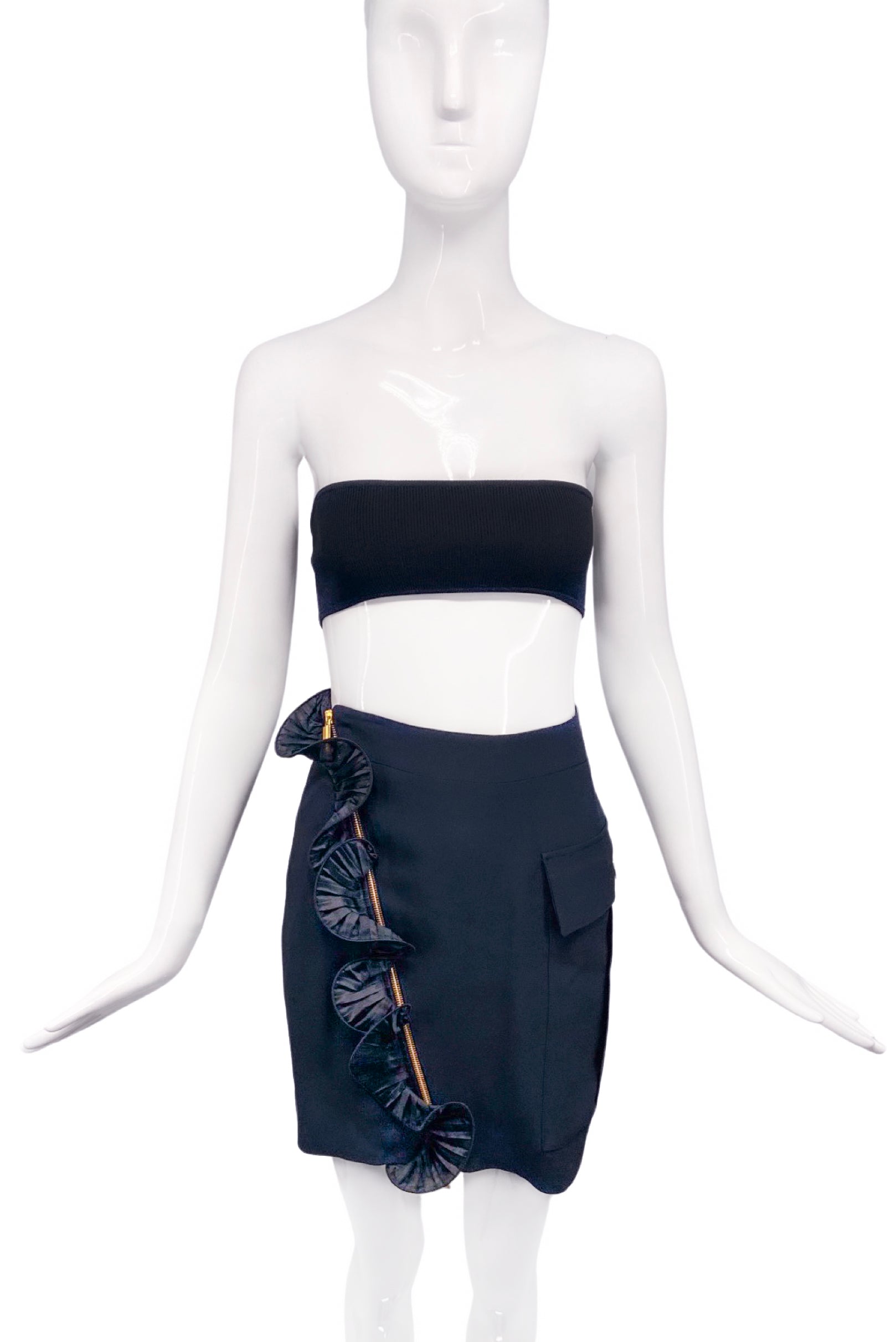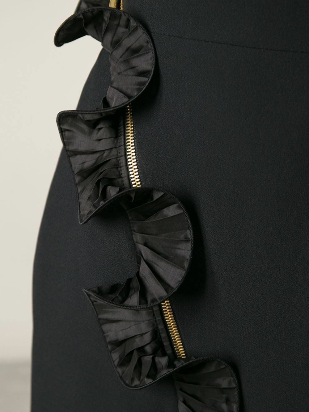 Emanuel Ungaro by Fausto Puglisi Black Ruffle Zipper Skirt