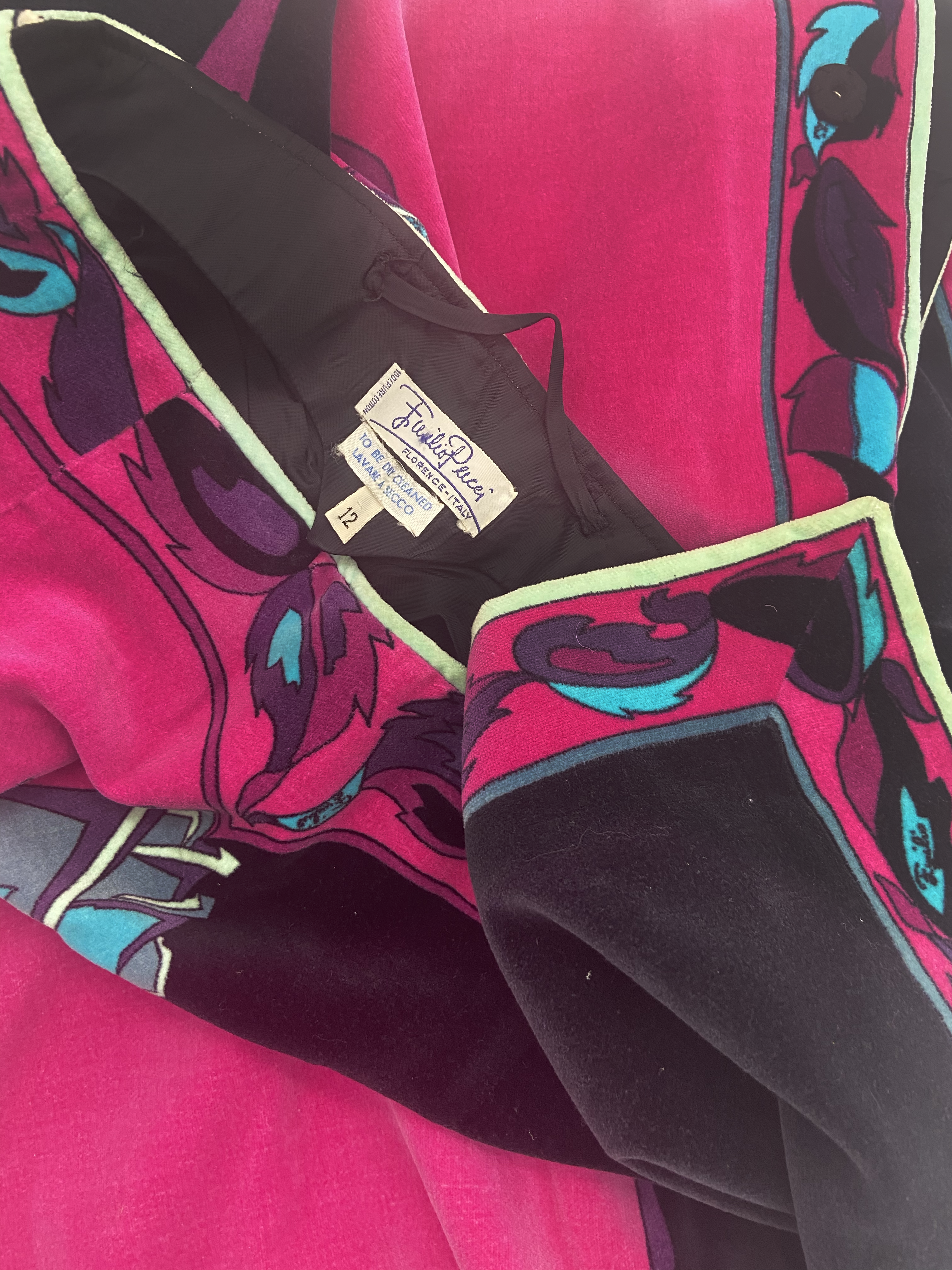 Emilio Pucci Vintage Velvet Black & Pink Maxi Skirt with Matching Jacket