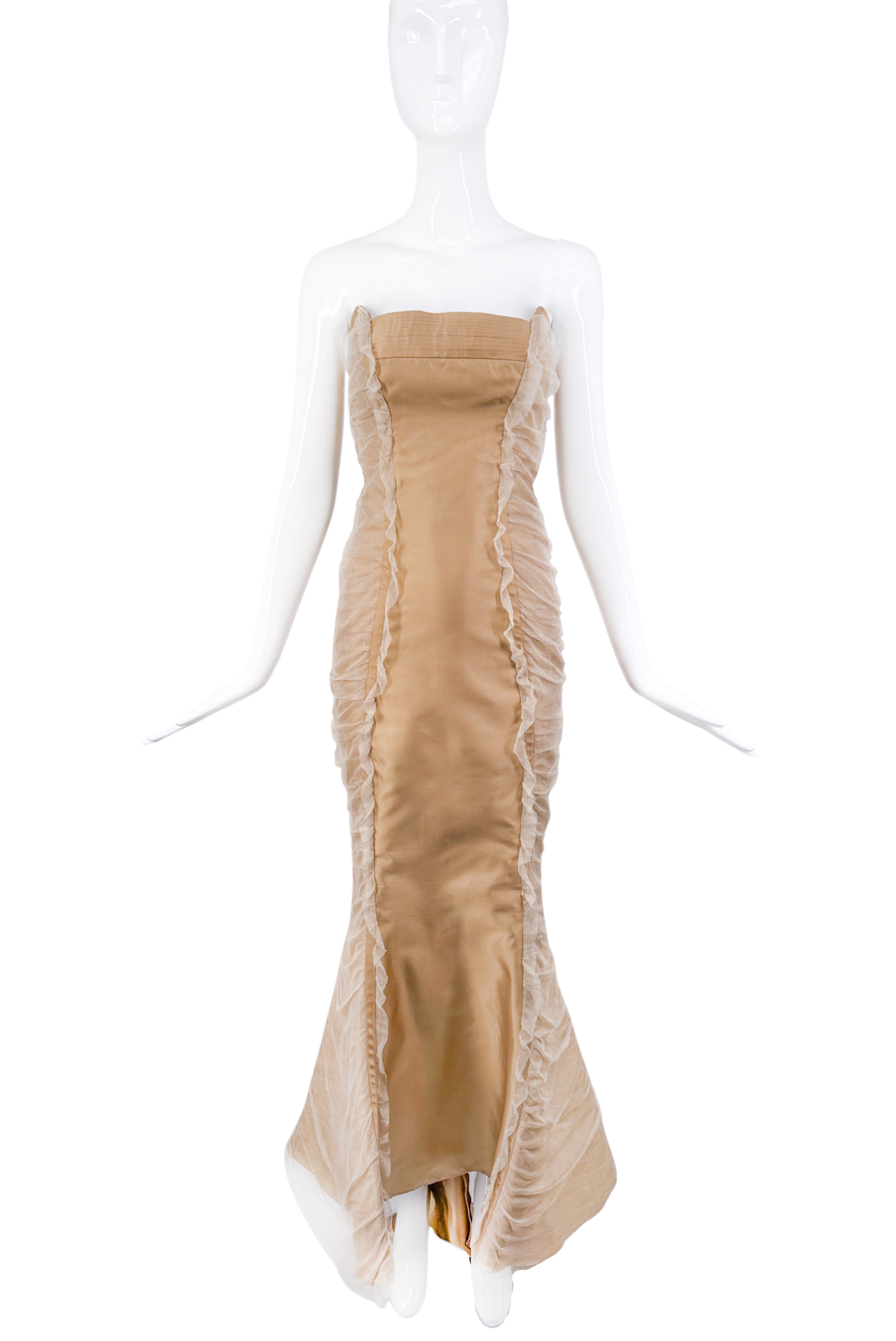 Esteban Cortazar Beige Fish Tail Raw Edged Tulle Hourglass Dress Gown