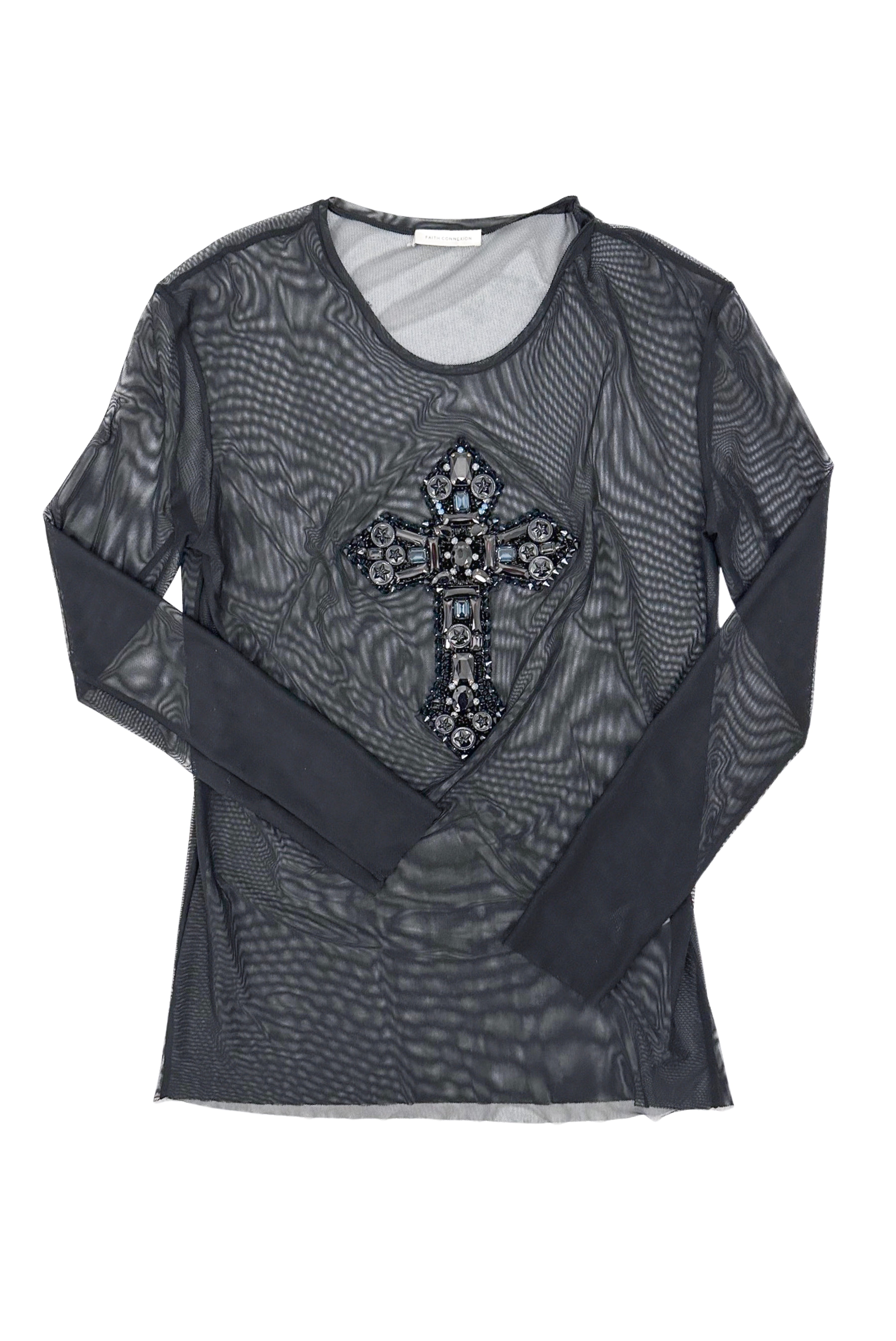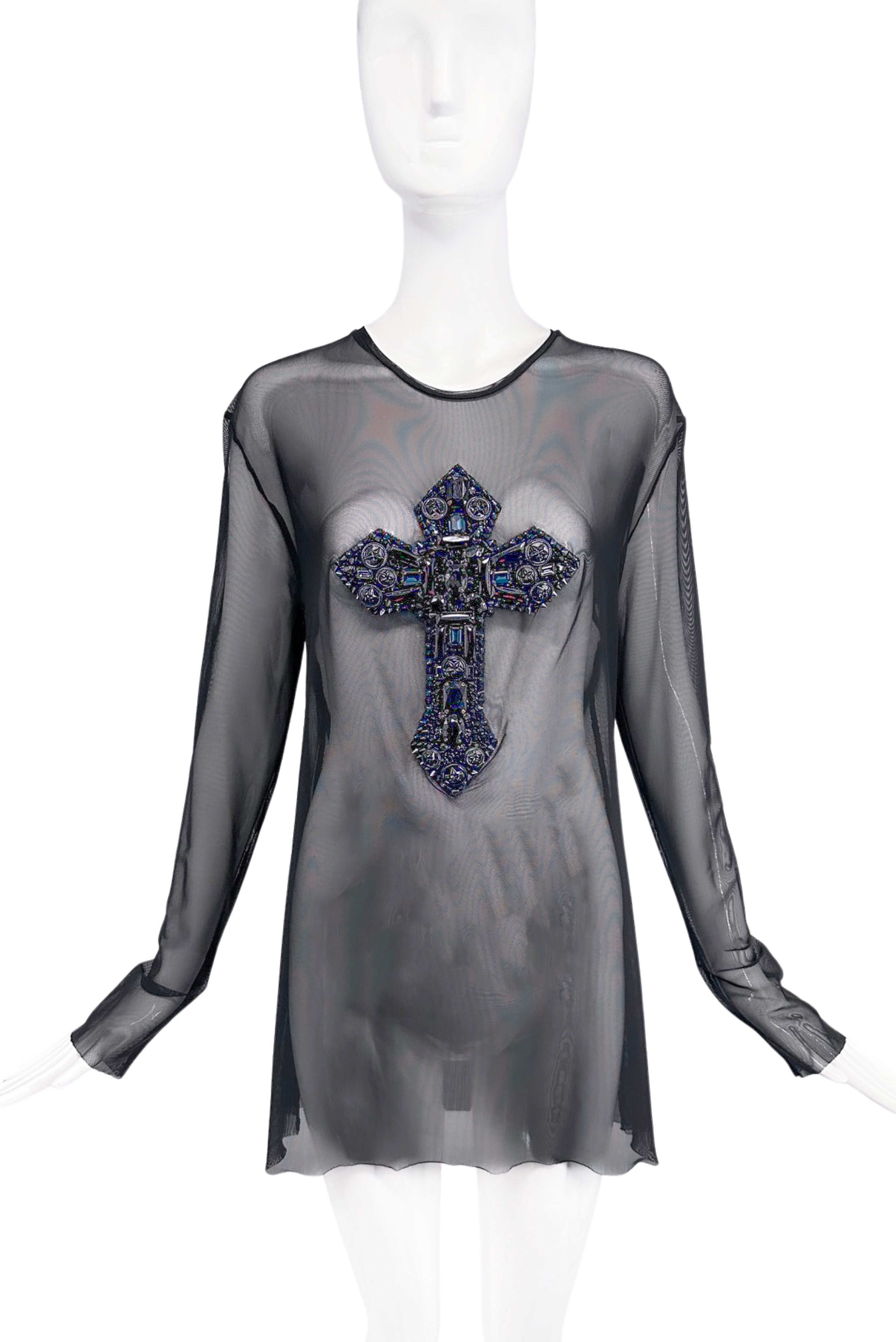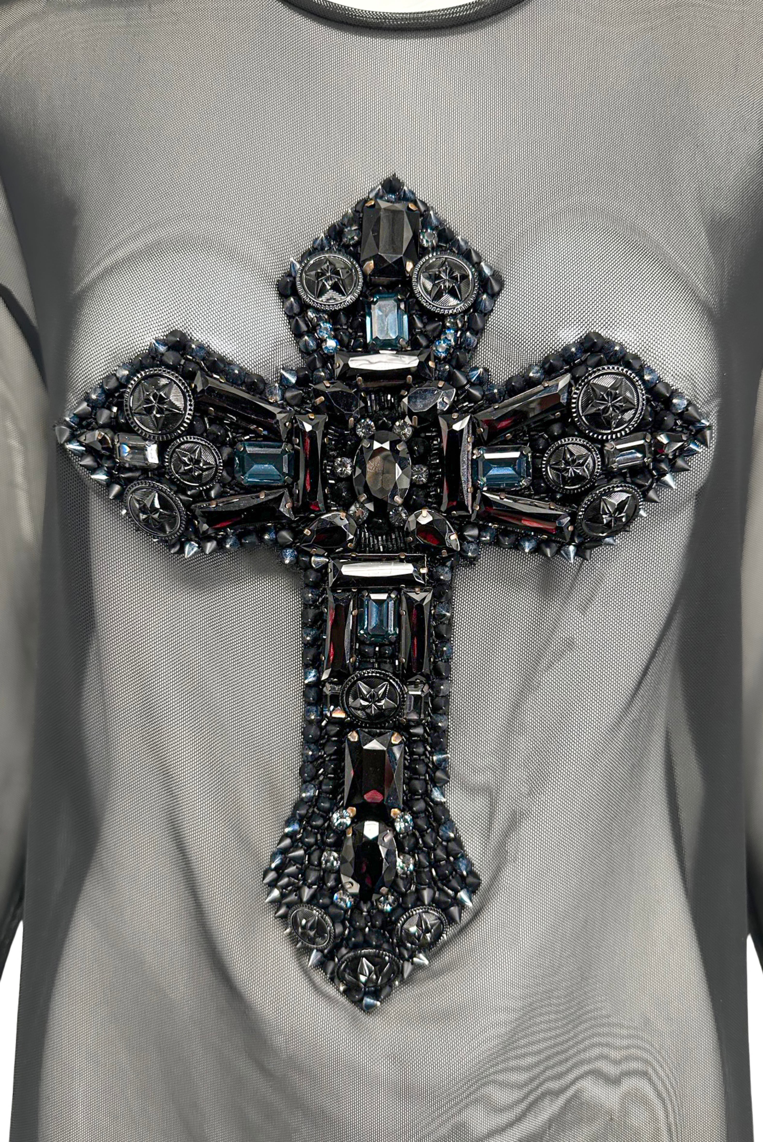 Faith Connexion Black Sheer Net Oversized Textured Cross Top Dress