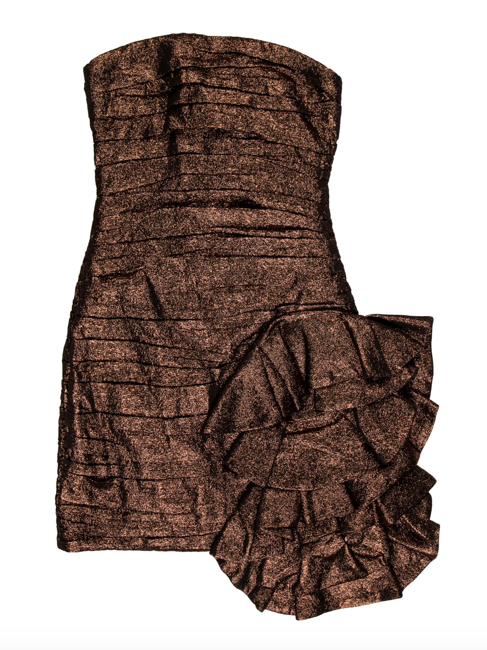 Faith Connexion Bronze Brown Copper Glitter Lurex Bandeau Mini Dress with Ruffle Detail