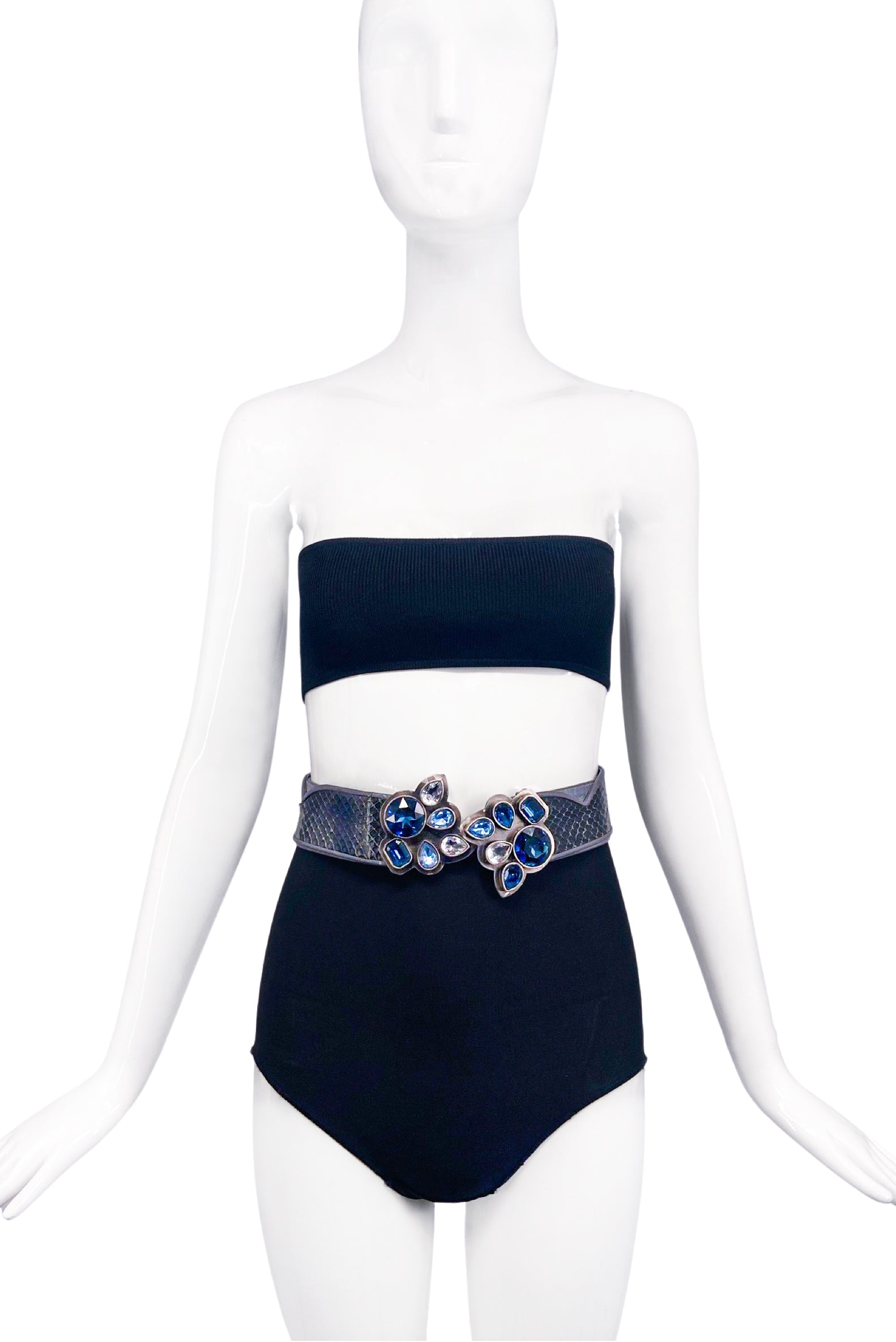 Galanos Grey Snakeskin Waist Belt with a Large Crystal Detail Buckle