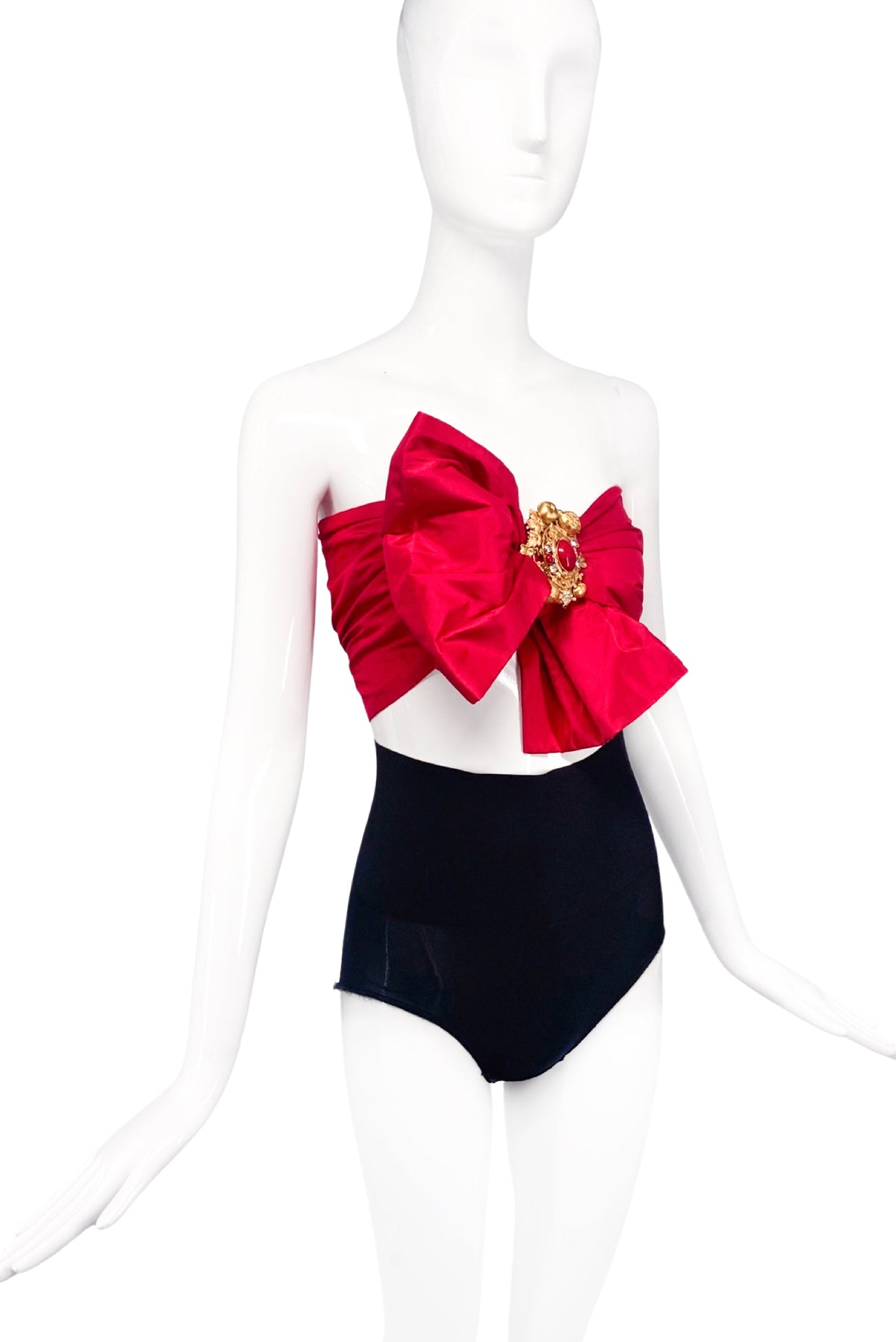 Gianfranco Ferré Red Bow Corset Gold Broach Top / Belt