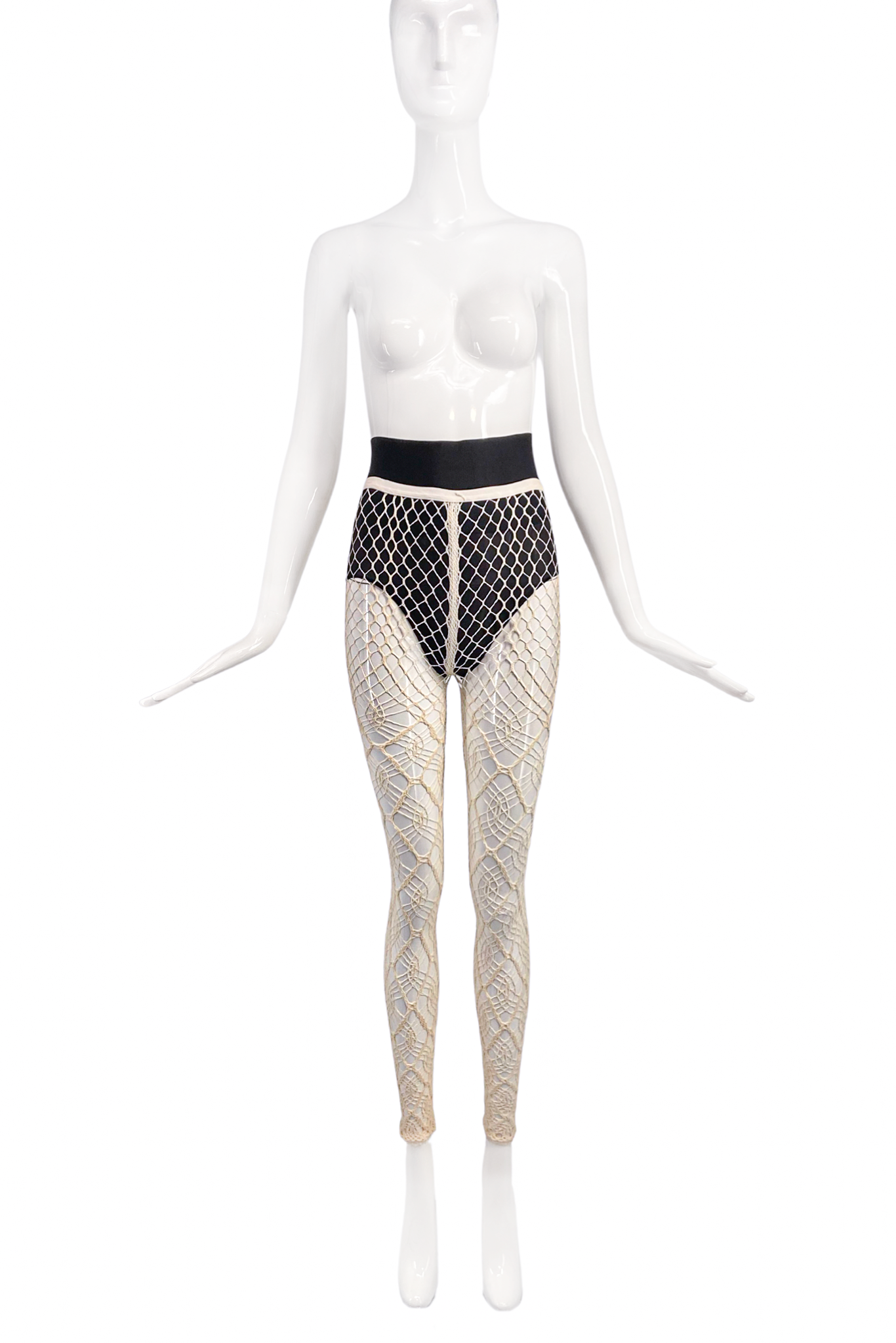 Gigi K. Designer Ivory Crochet Fishnet Thigh Highs & Legging Tights