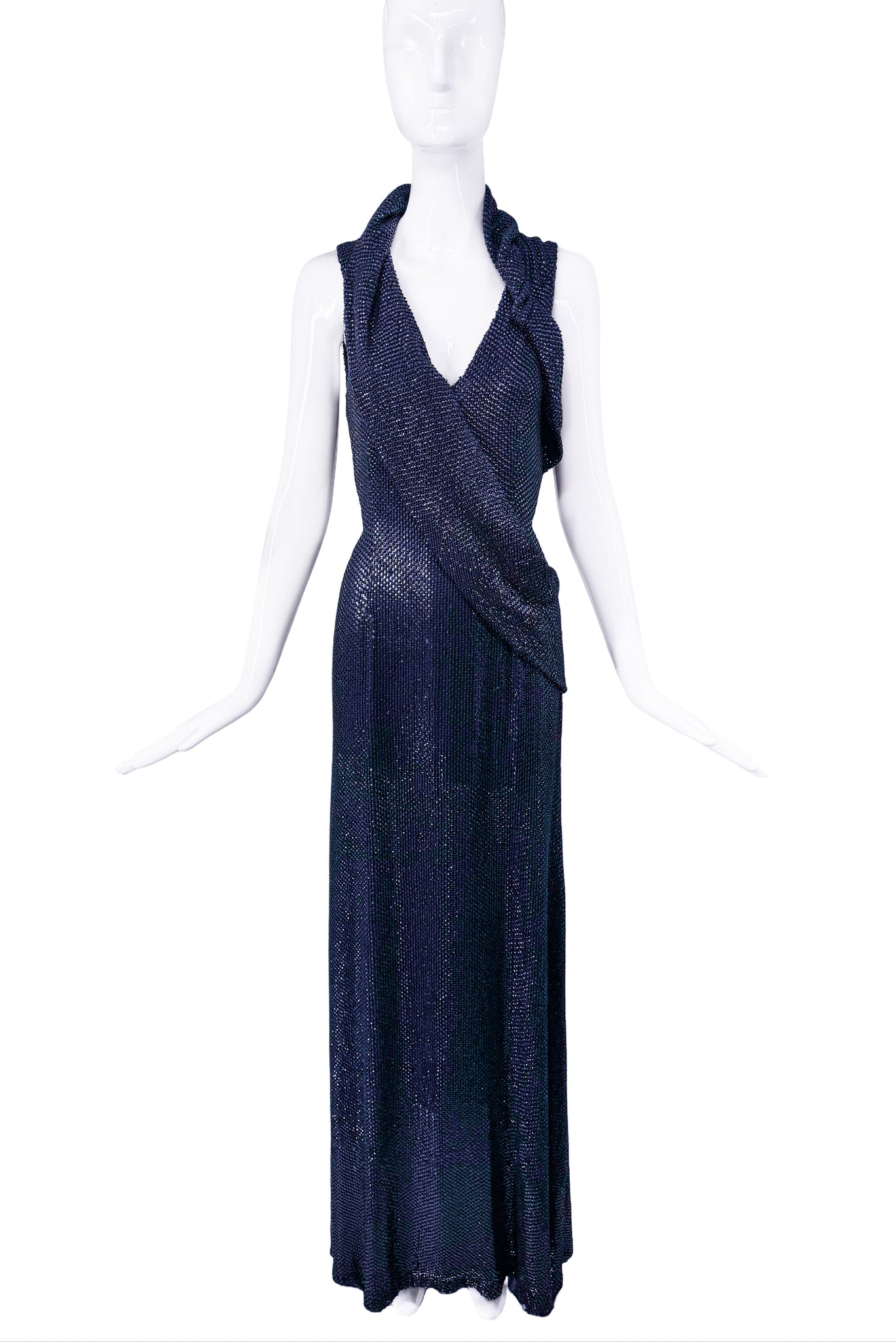 Gucci Blue Beaded Crystal Draped Goddess Gown