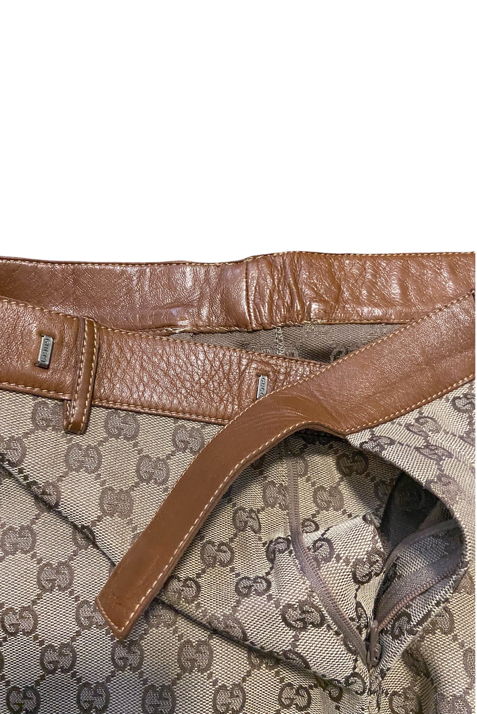 Gucci Brown Canvas Iconic GG Gucci Logo Print Leather Waistband 90's Tom Ford Skirt