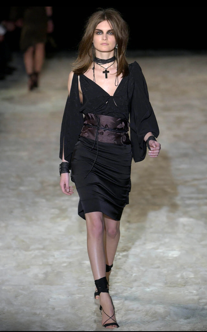 Gucci by Tom Ford Black Lace Up Stiletto Shoe Heel Sandal Fall 2002 Runway