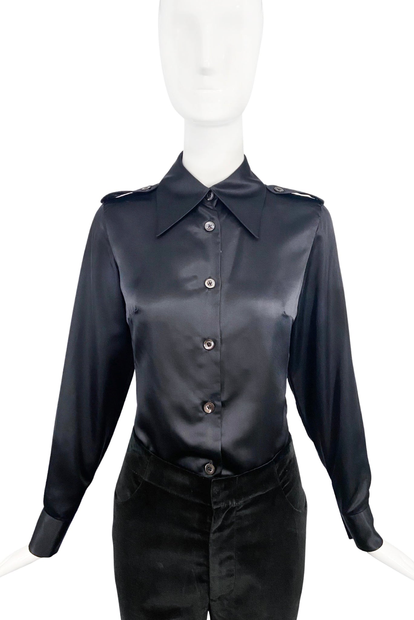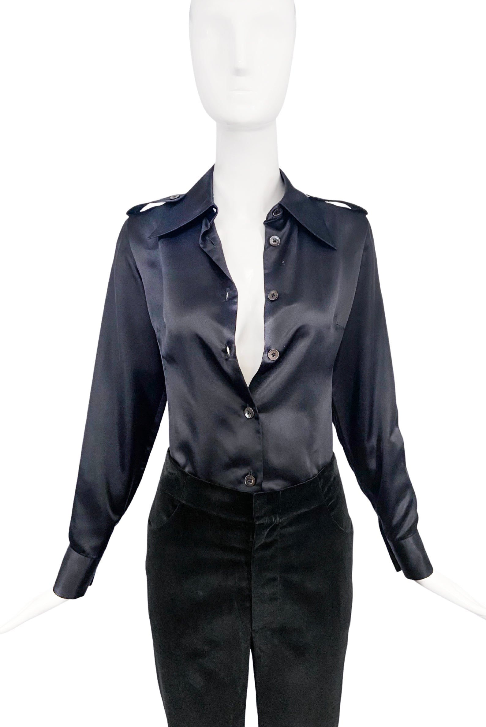 Gucci by Tom Ford Black Satin Silk Military Shirt Iconic 1996 Collection