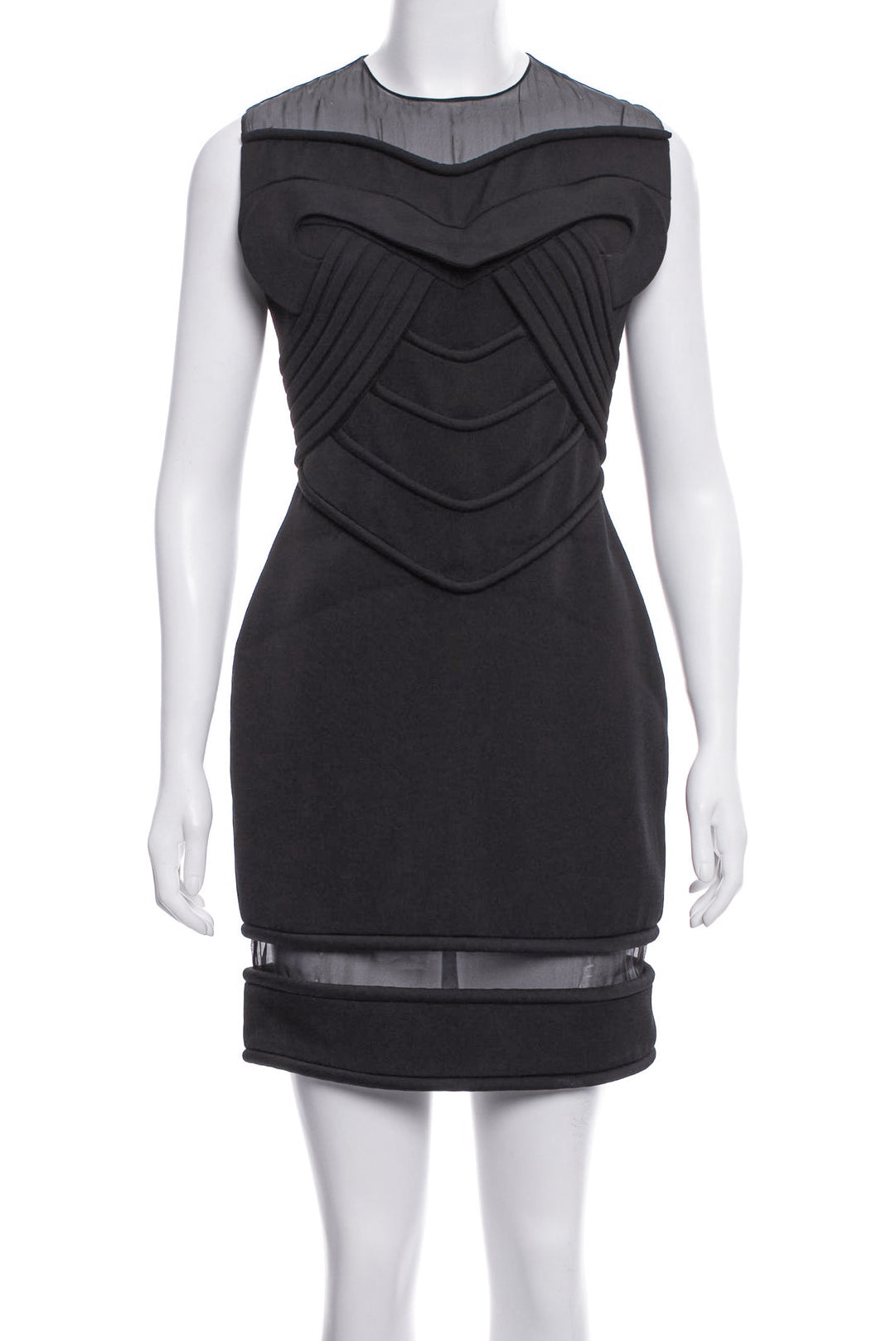 Hakaan Black Body Con Textured Layered Sheer Dress
