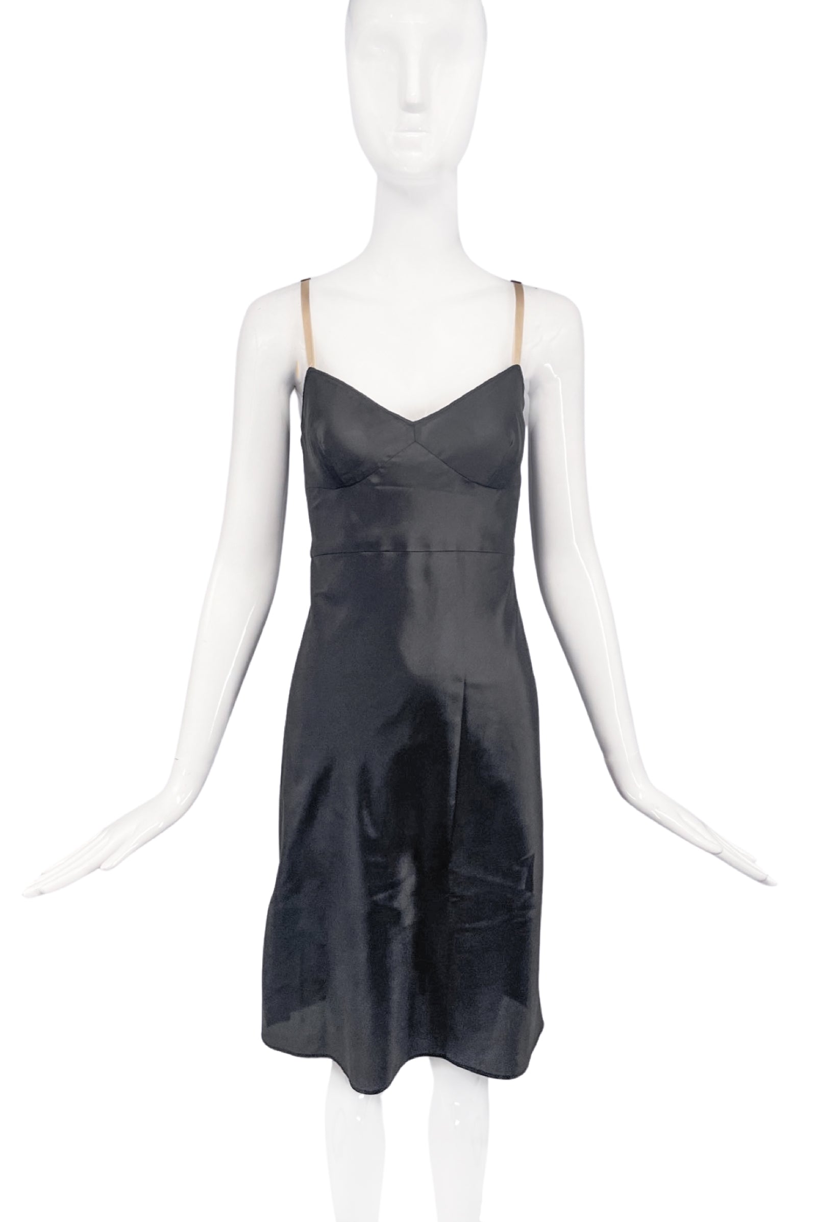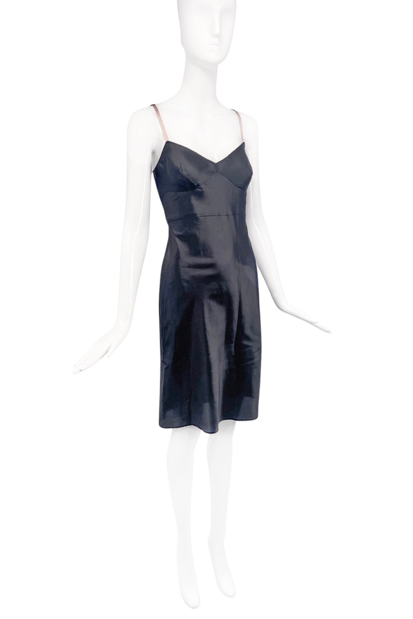 Helmut Lang Black Nylon Iconic 90's Nude Satin Strap Slip Dress