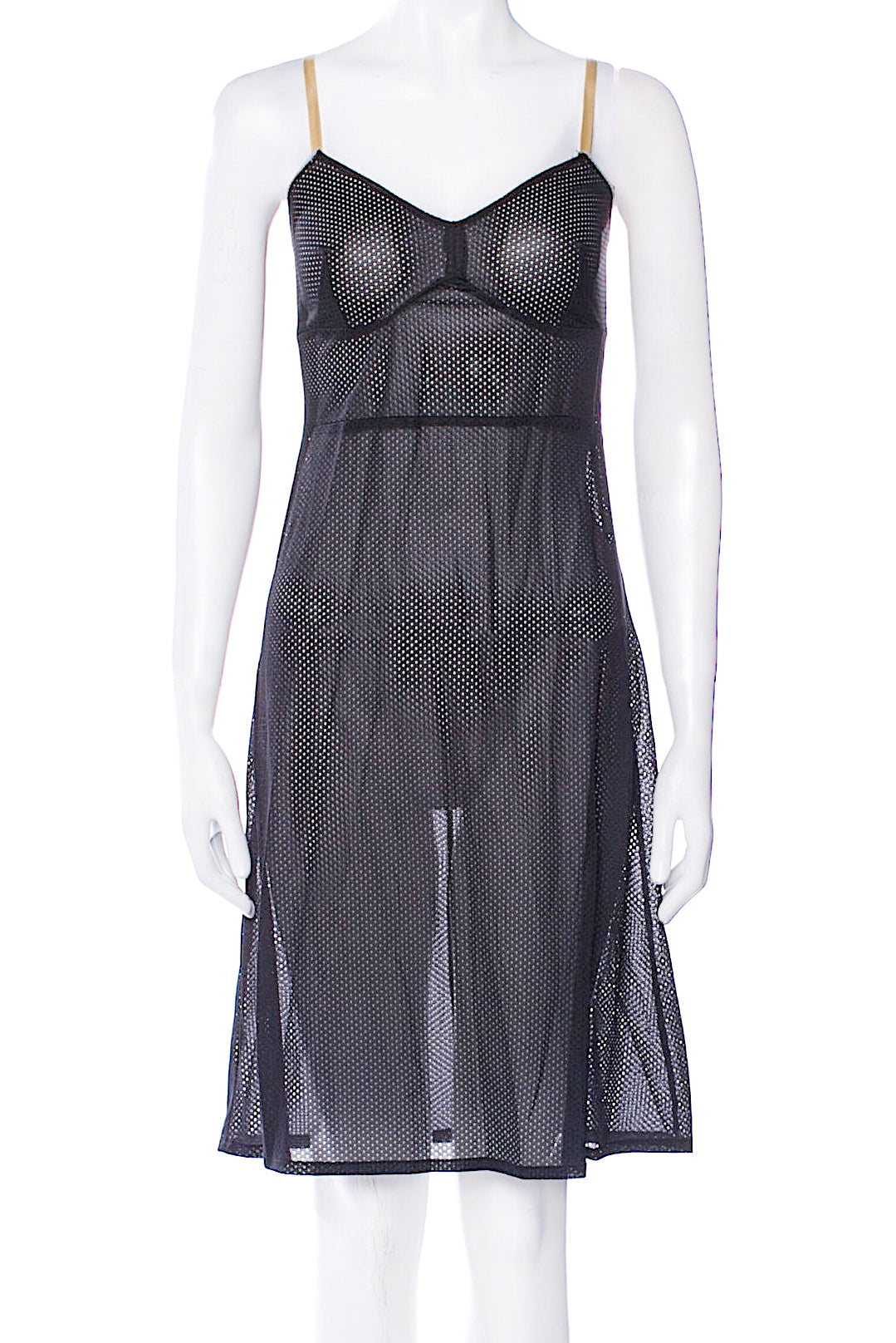 A Helmut Lang black jersey mesh fit and flare dress with thin tank style straps.