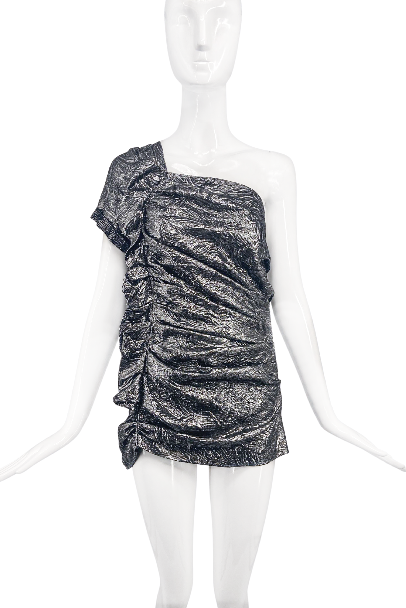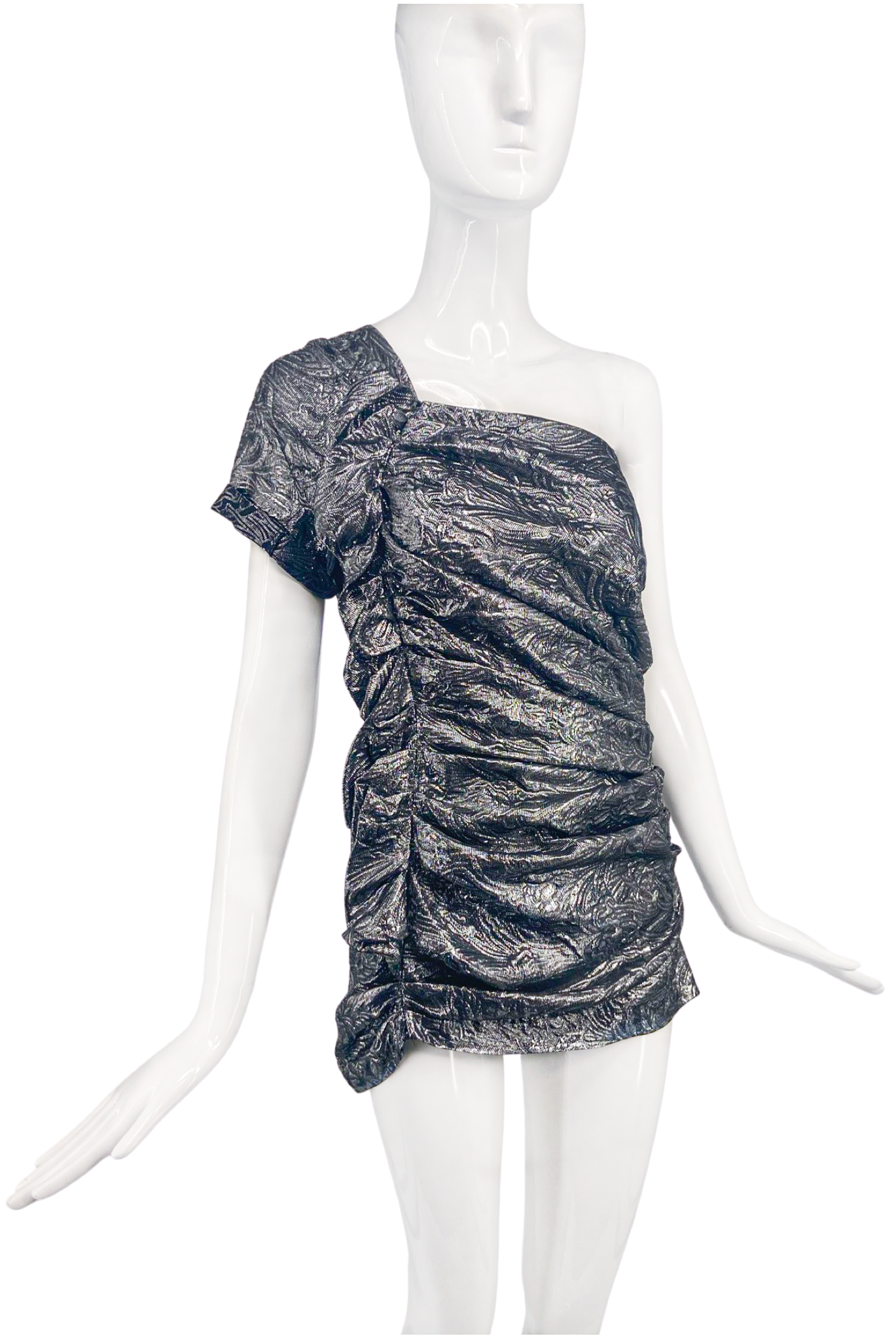Isabel Marant Silver Metallic Textured Ruffle Ruched Top / Dress
