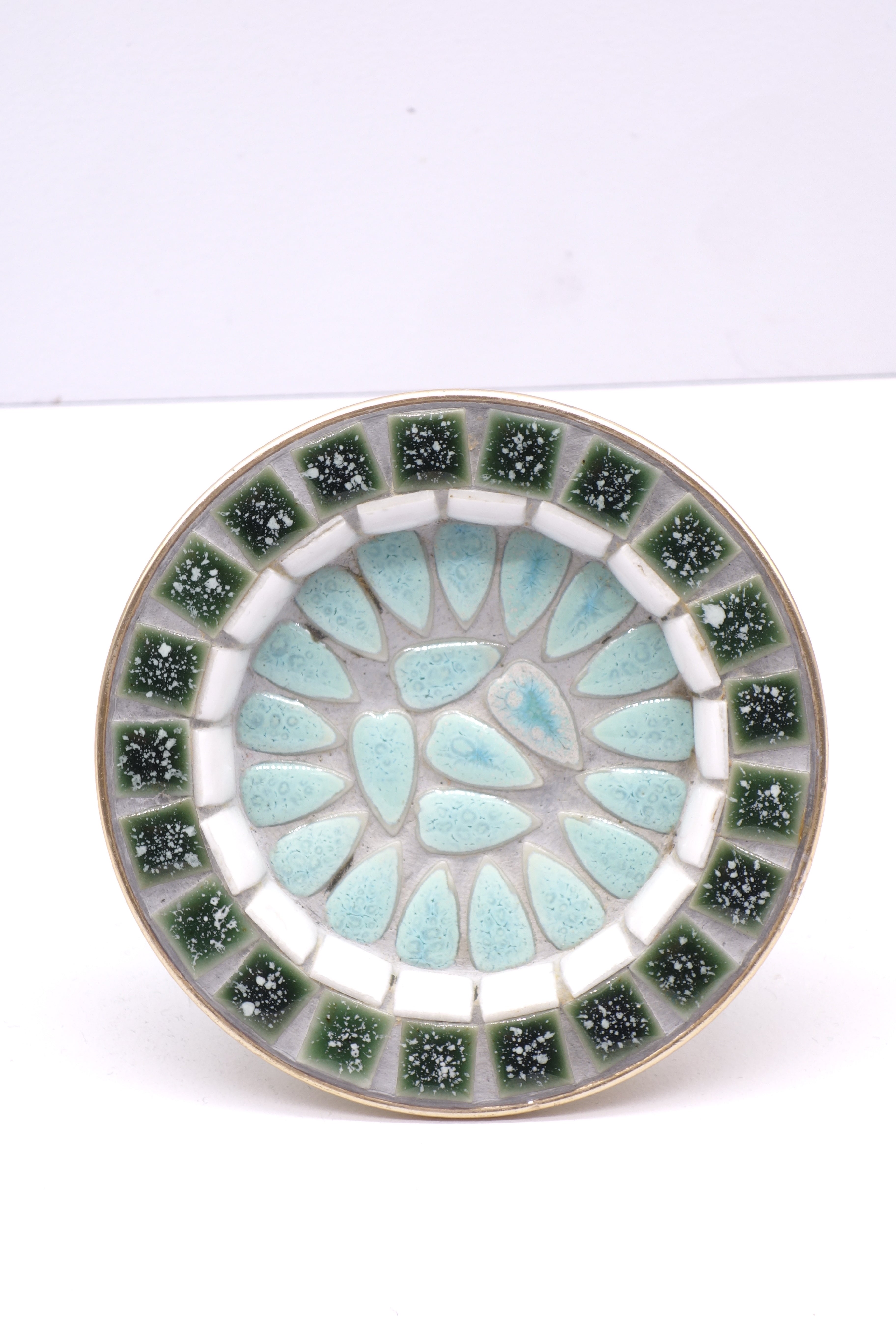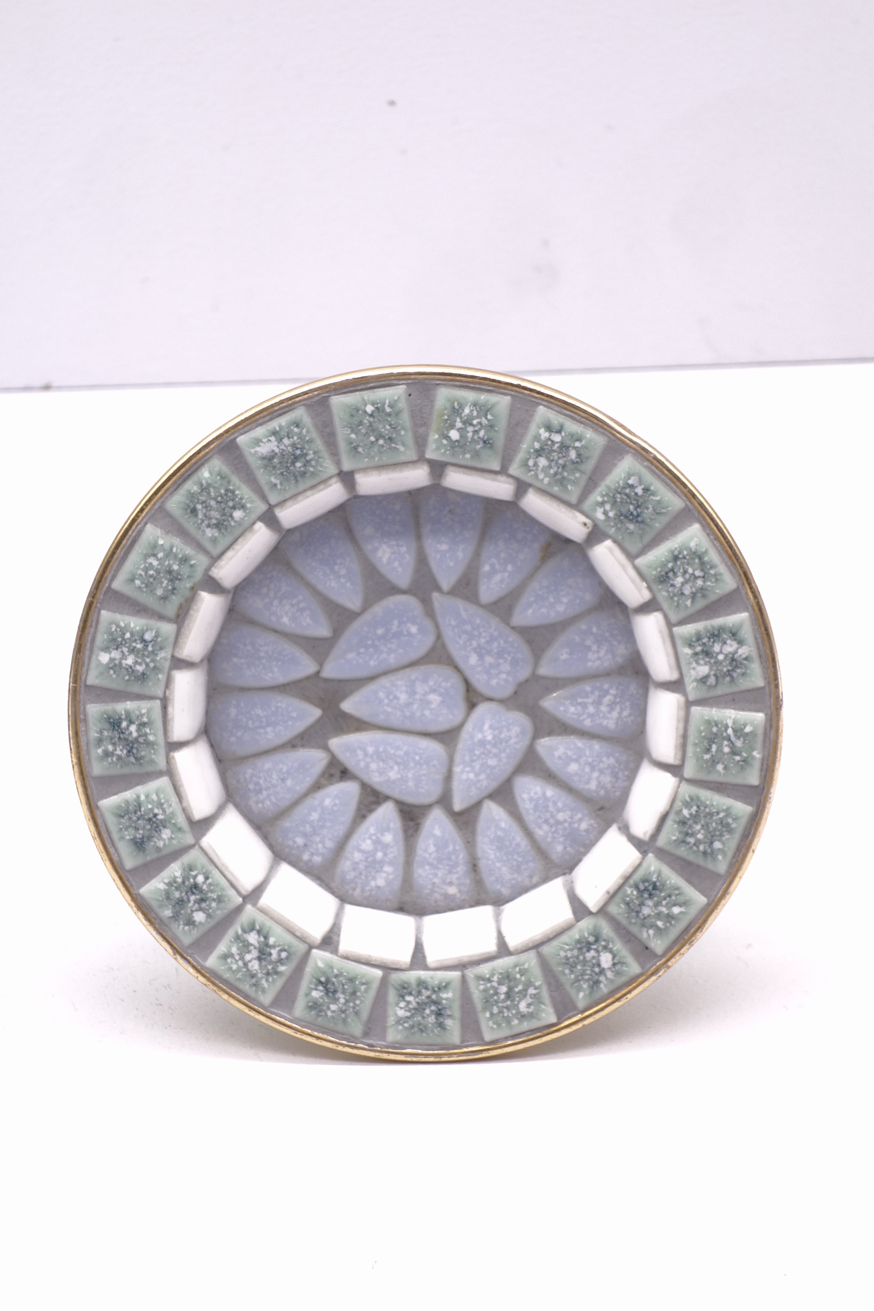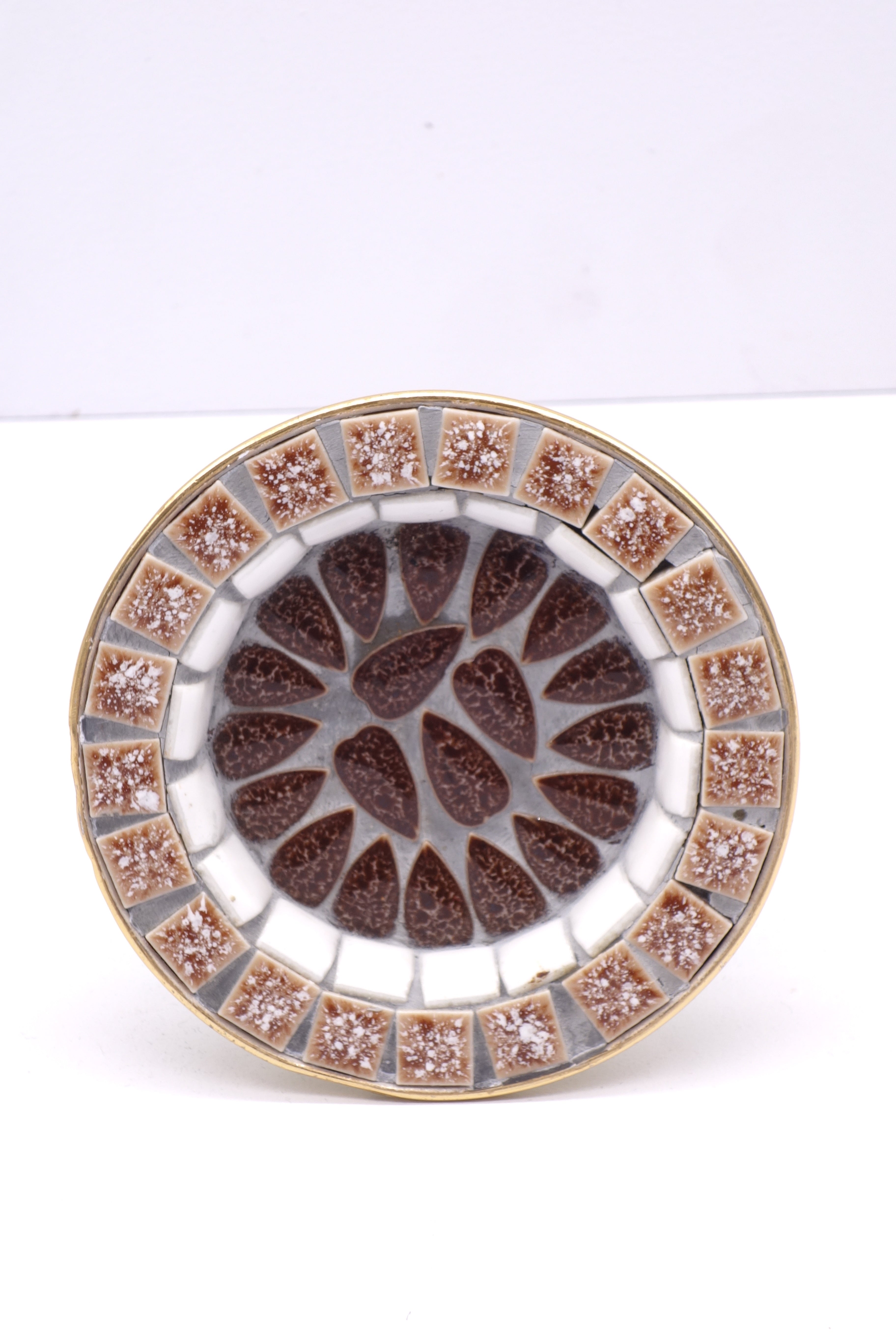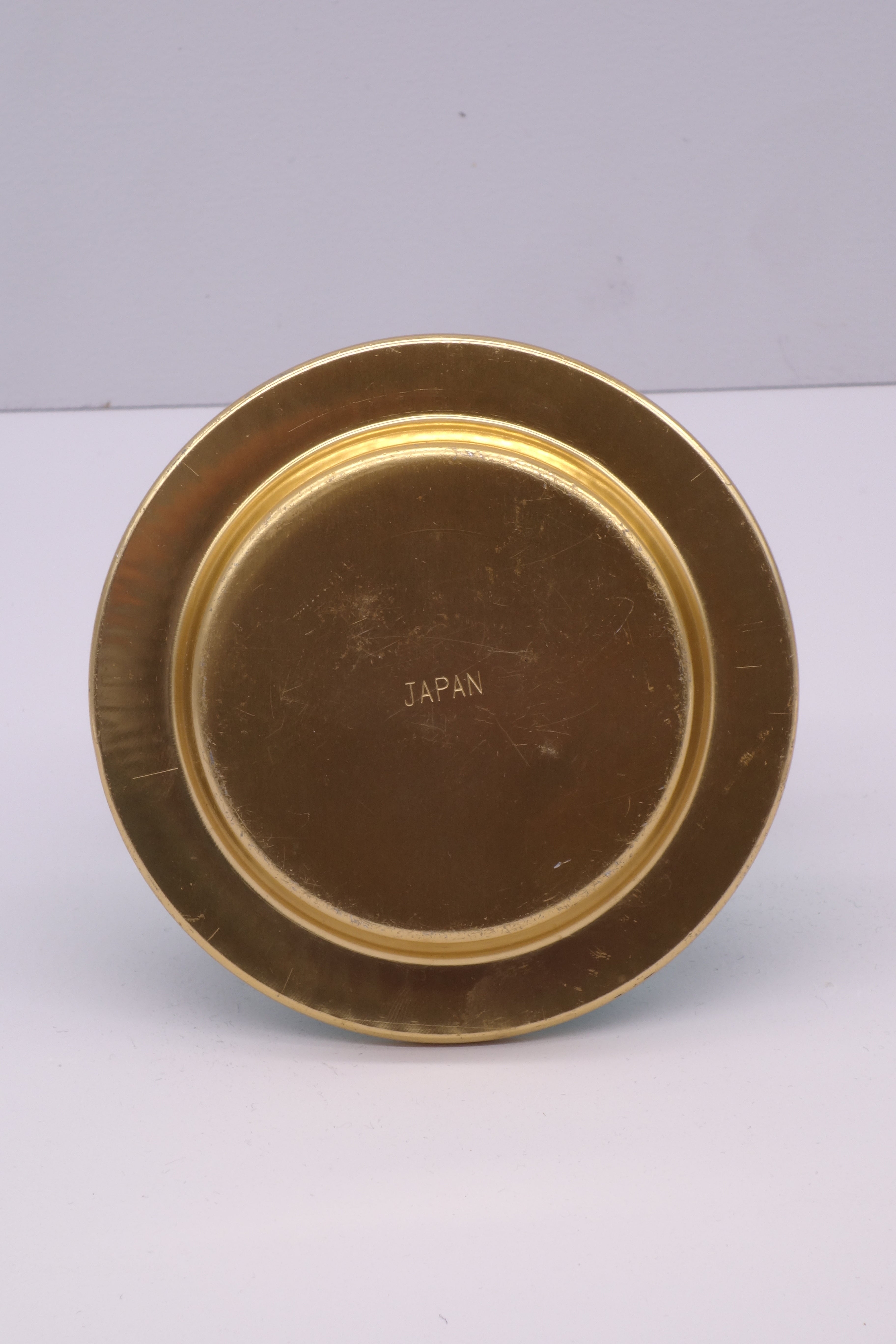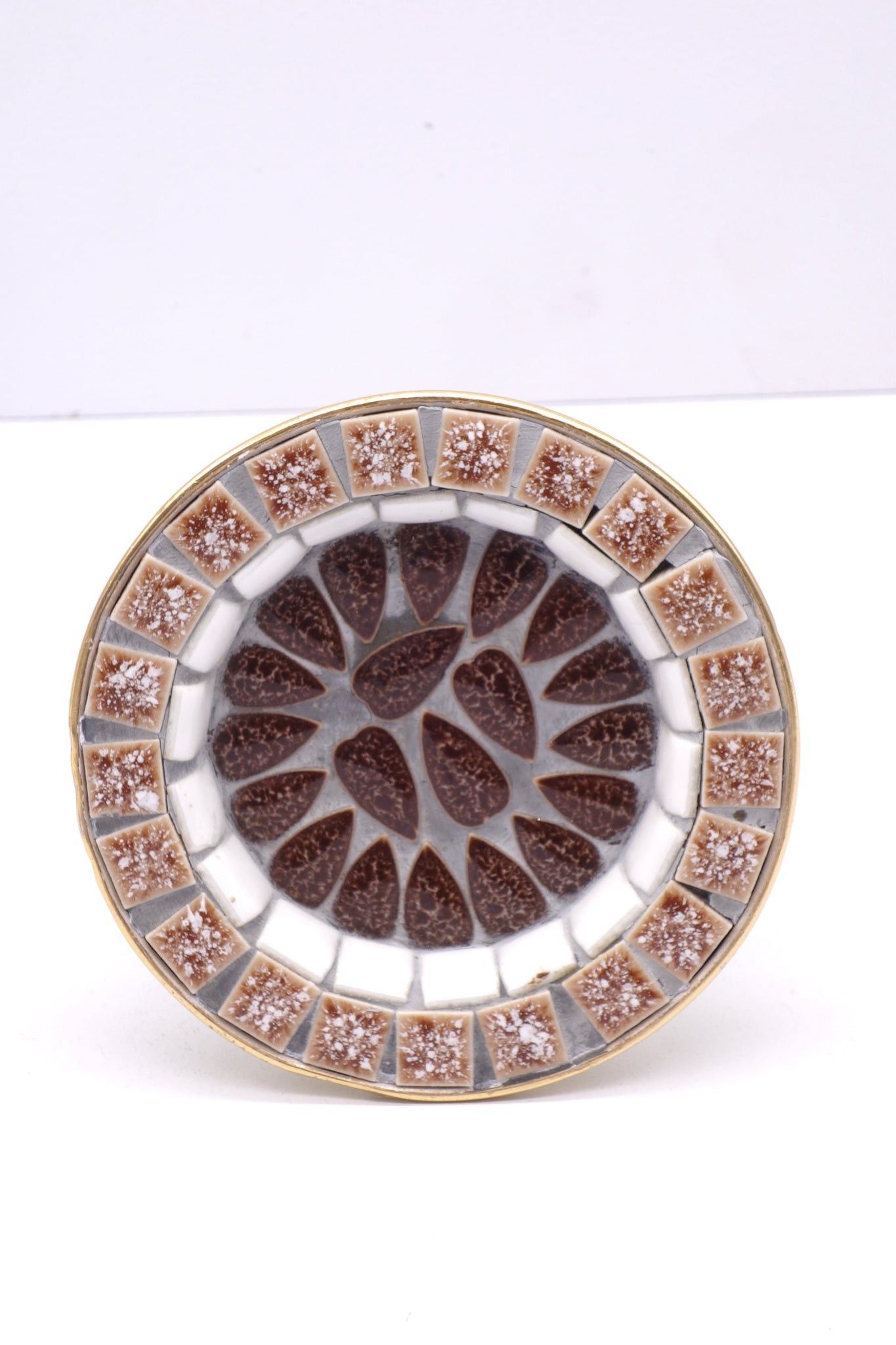 Four vintage porcelain mosaic tile dishes with a gold metal back - all are stamped Japan.