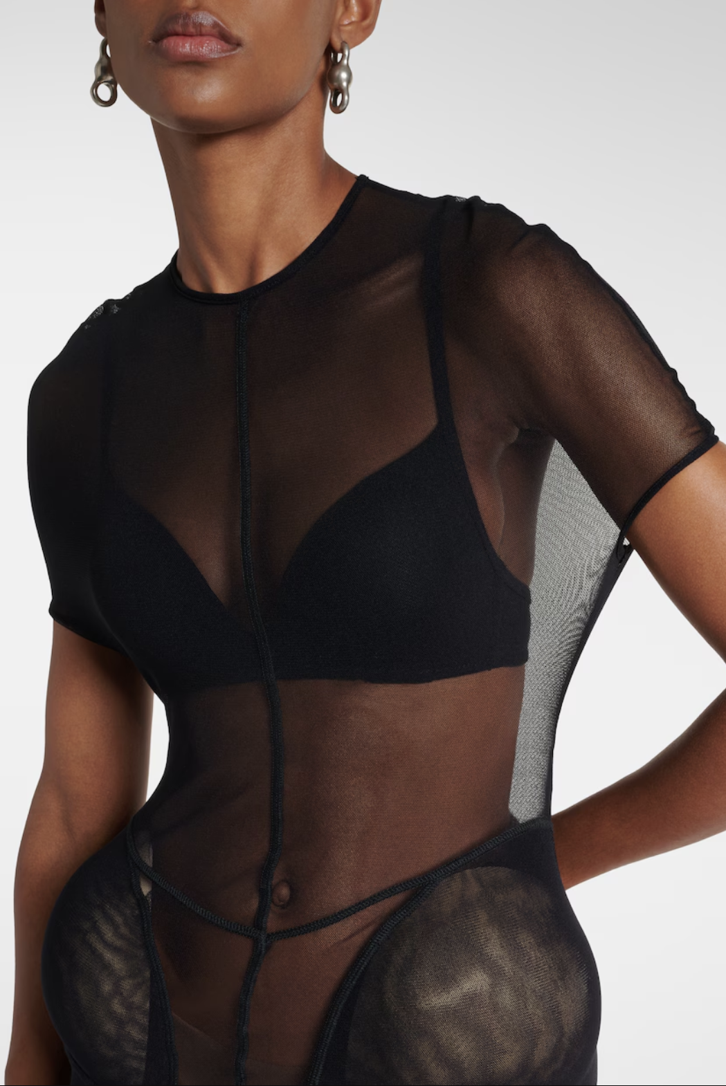 Jean Paul Gaultier Black Sheer Mesh Hip Pad Silhouette Dress Gown