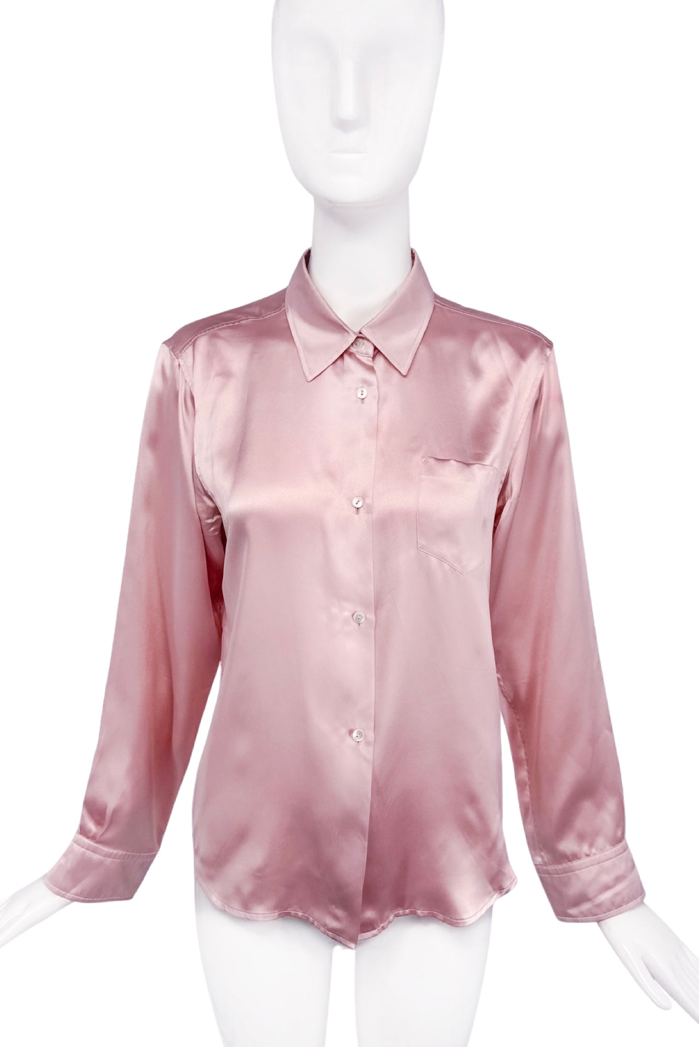 Jil Sander Pale Pink Satin Silk Button Up Blouse Shirt #