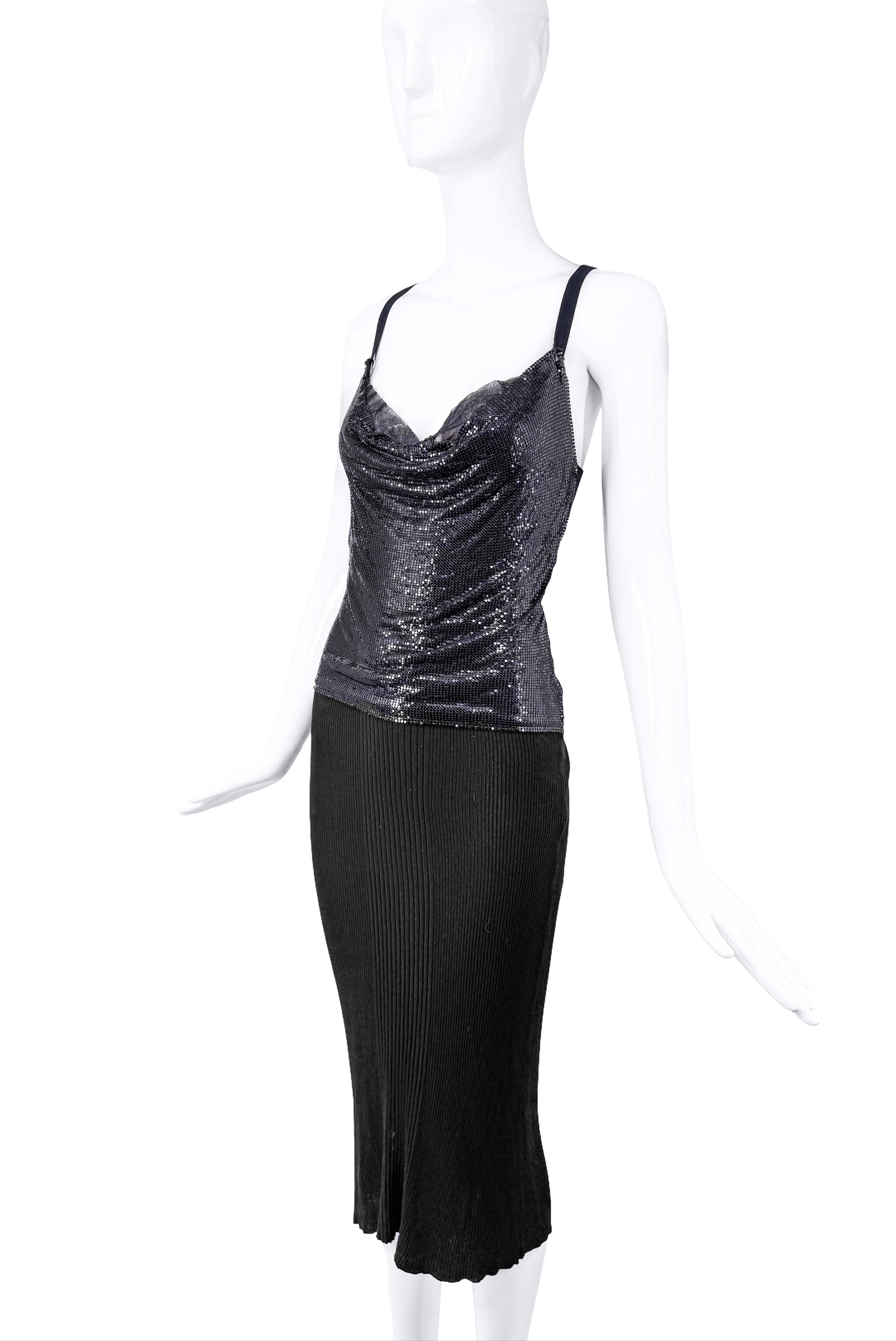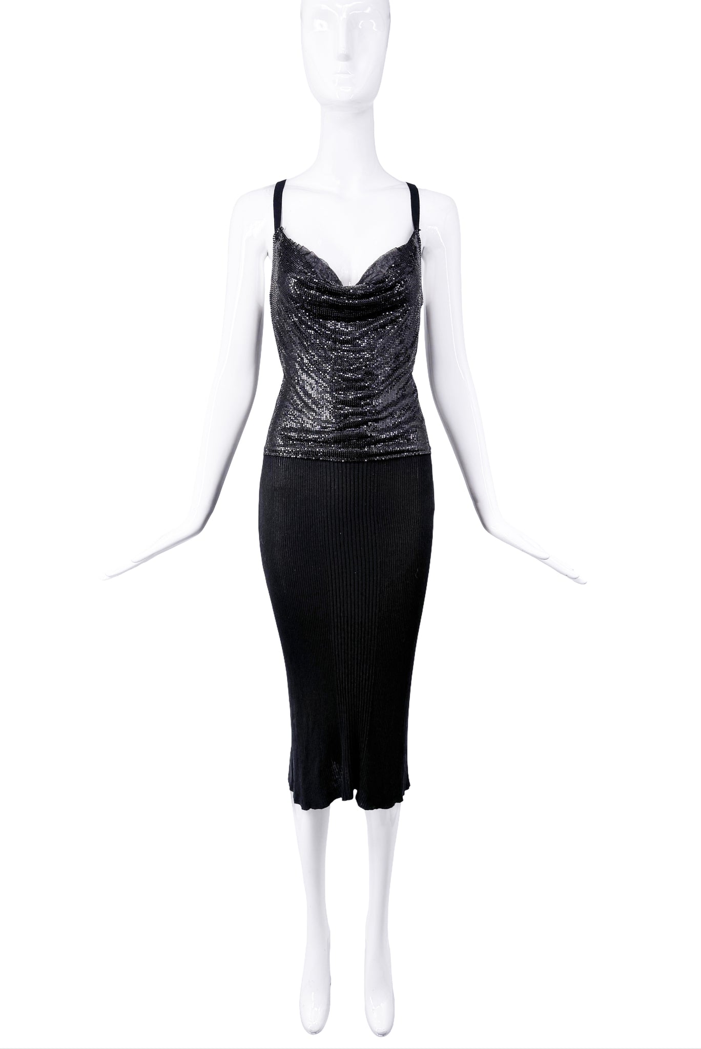 Jean Paul Gaultier Black Chainmail Draped Knit Dress