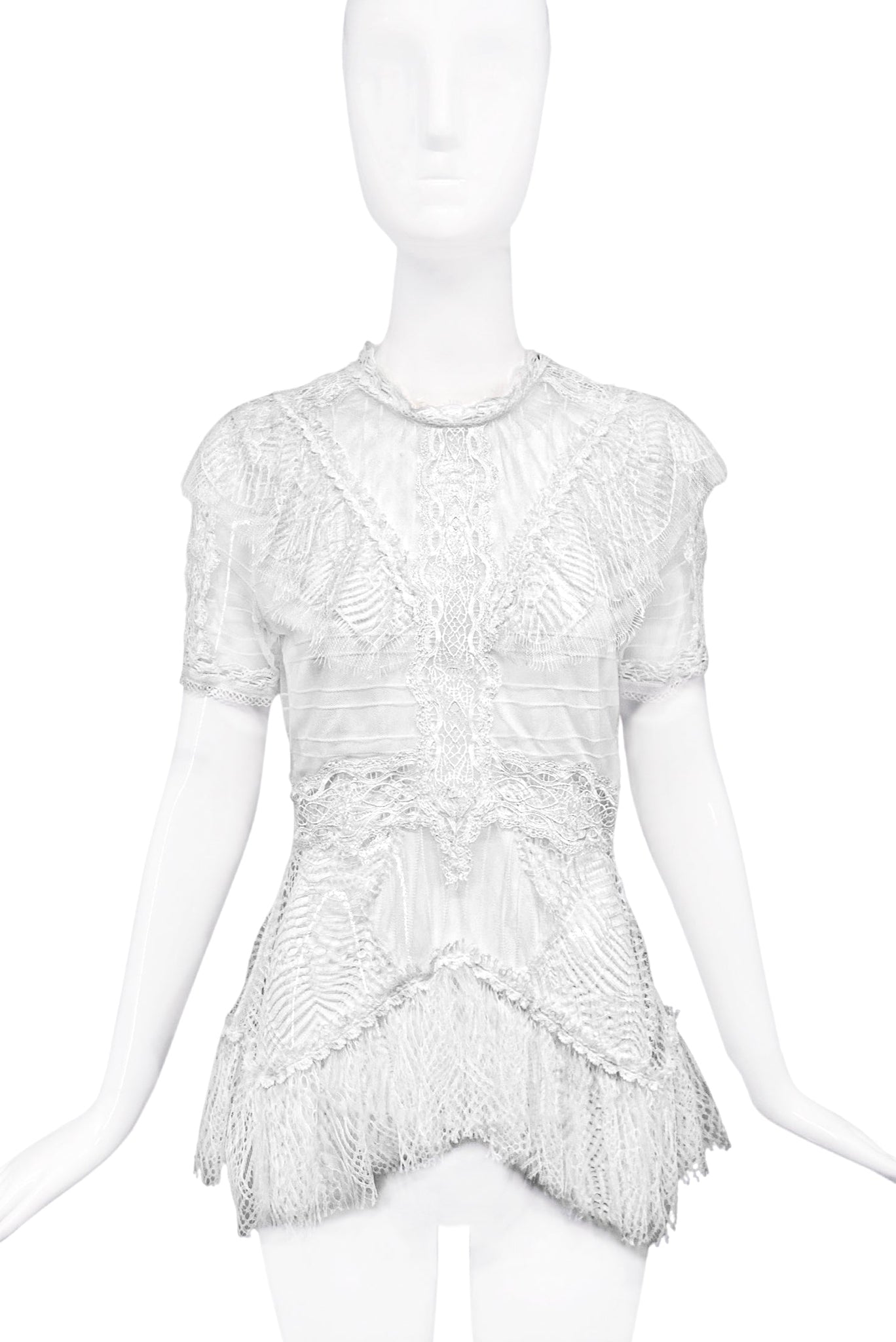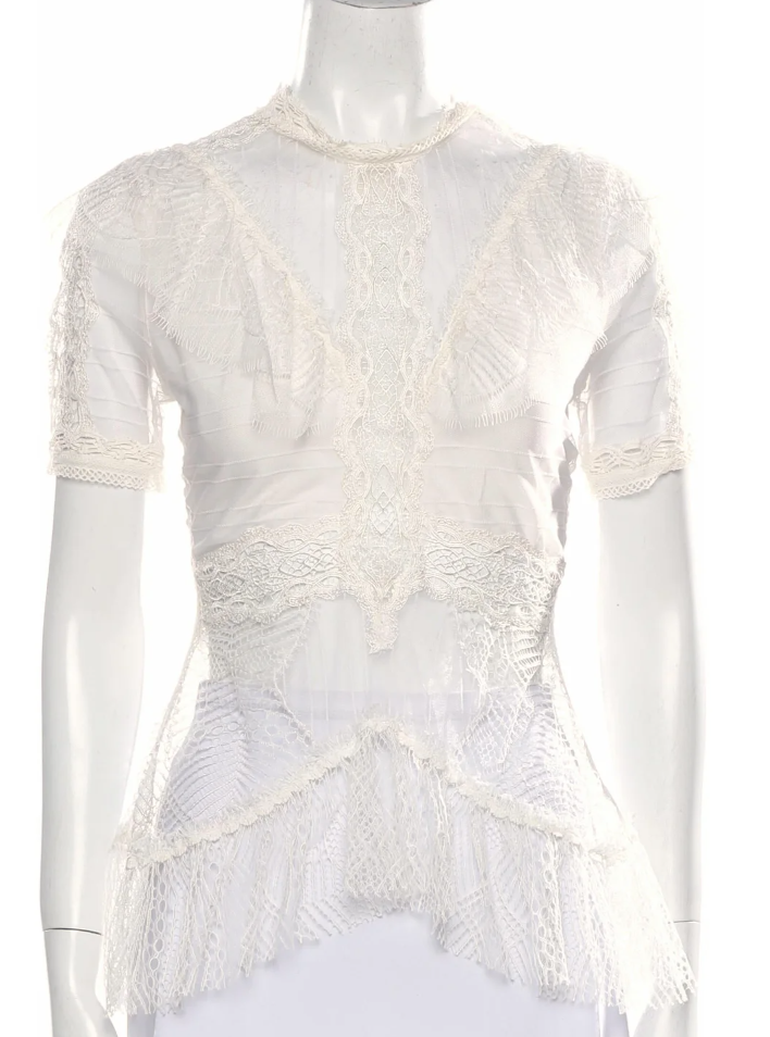 Jonathan Simkhai White Lace Ruffle Peplum Top