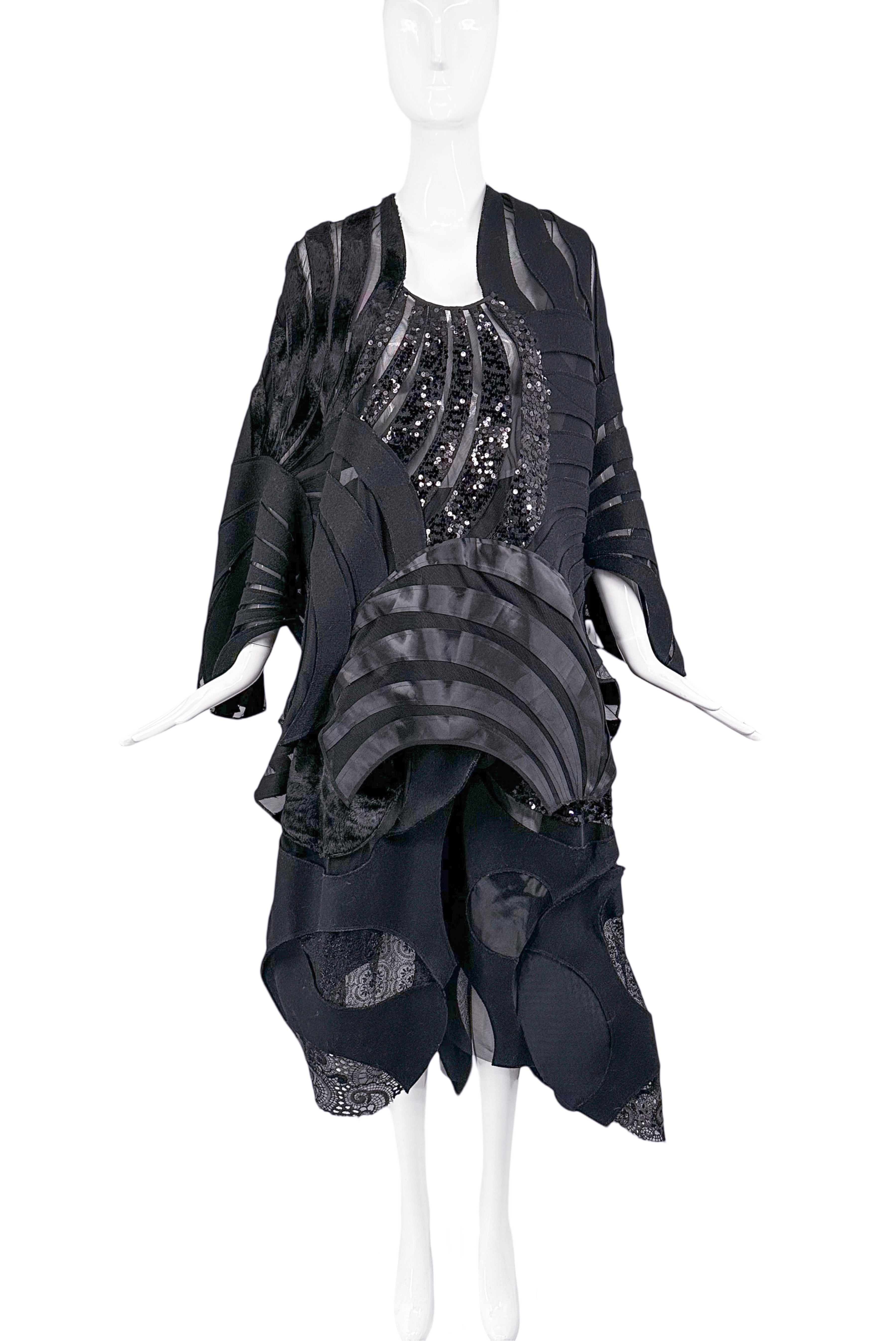 Junya Watanabe Black Cut Out Swirl Top & Skirt Dress Fall 2014