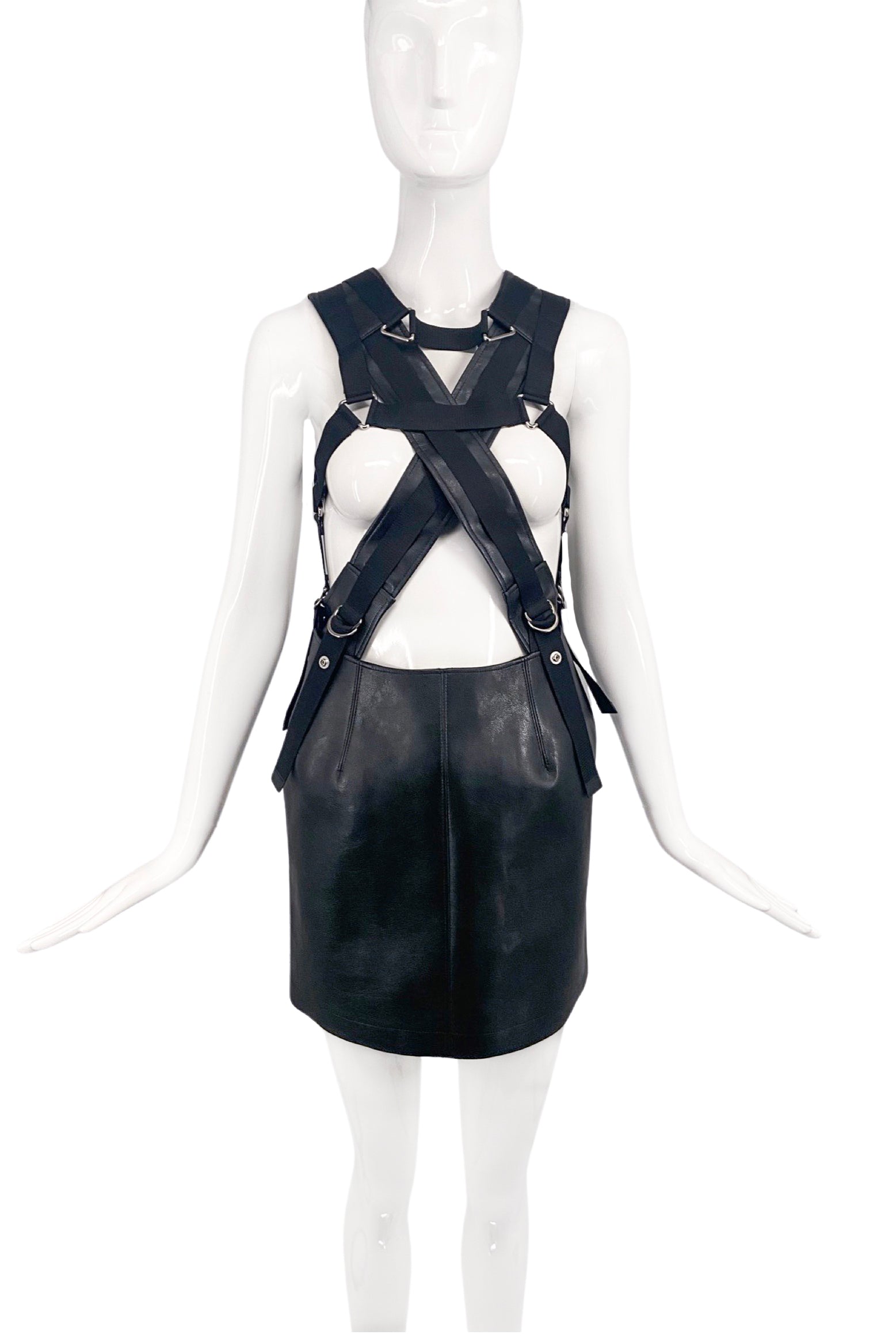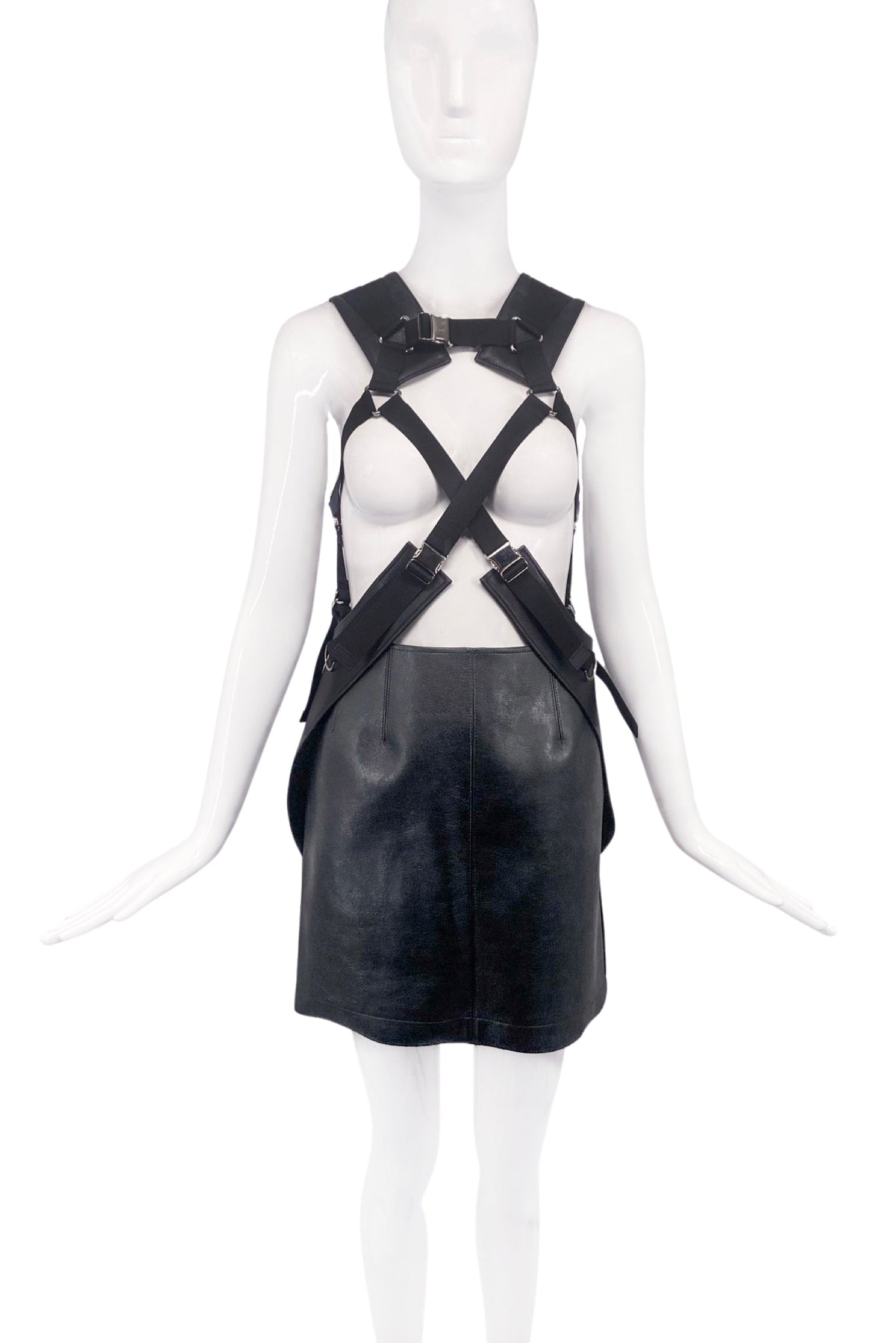 Junya Watanabe Comme des Garcons Black Leather Metal Harness Dress