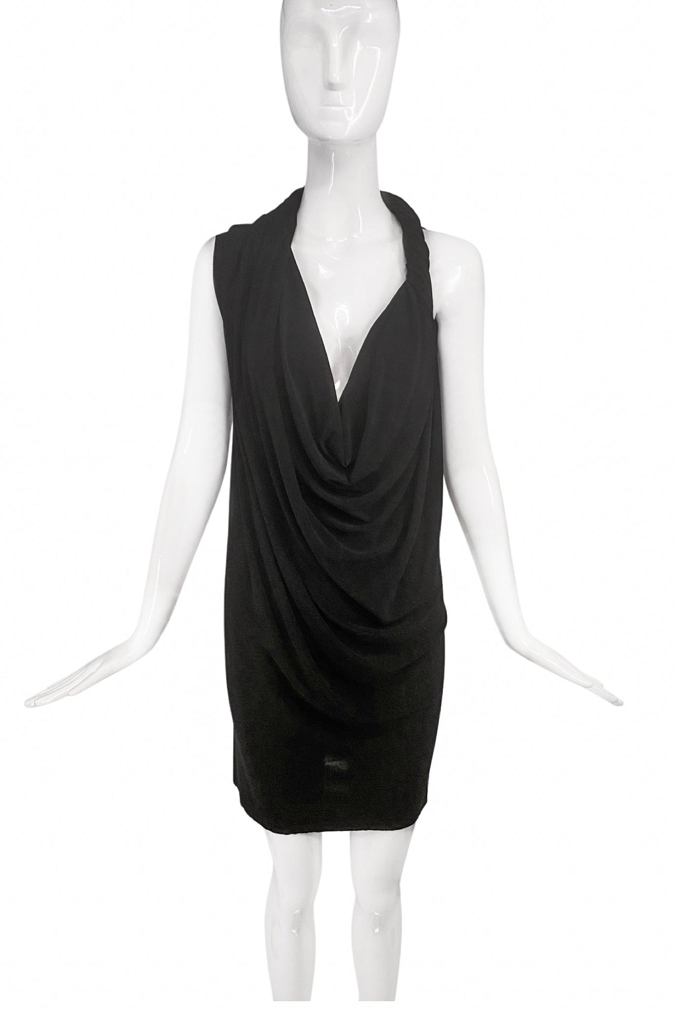 Lanvin Black Jersey Knit Twisted Strap Mini Dress with Plunging Neckline SS2012