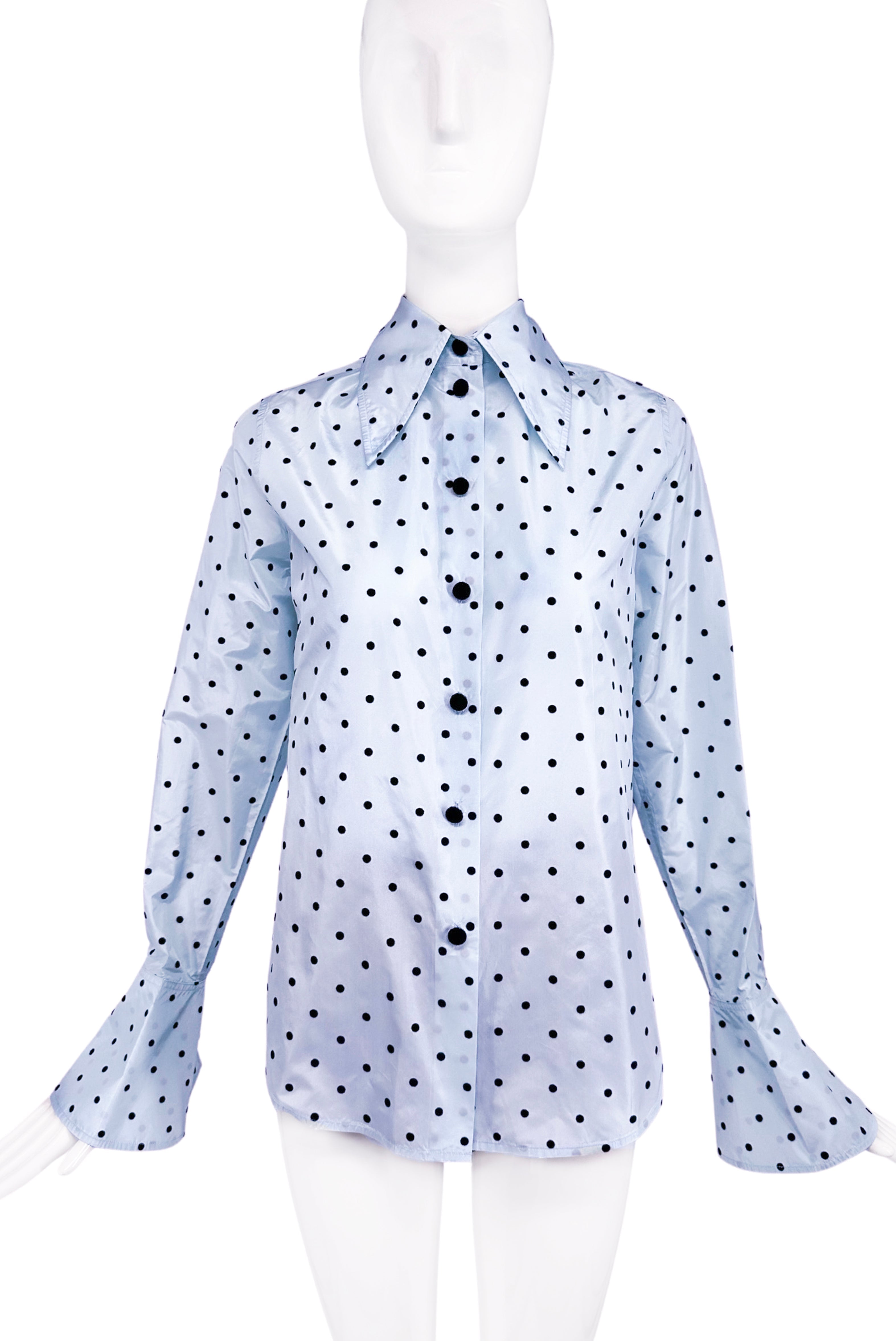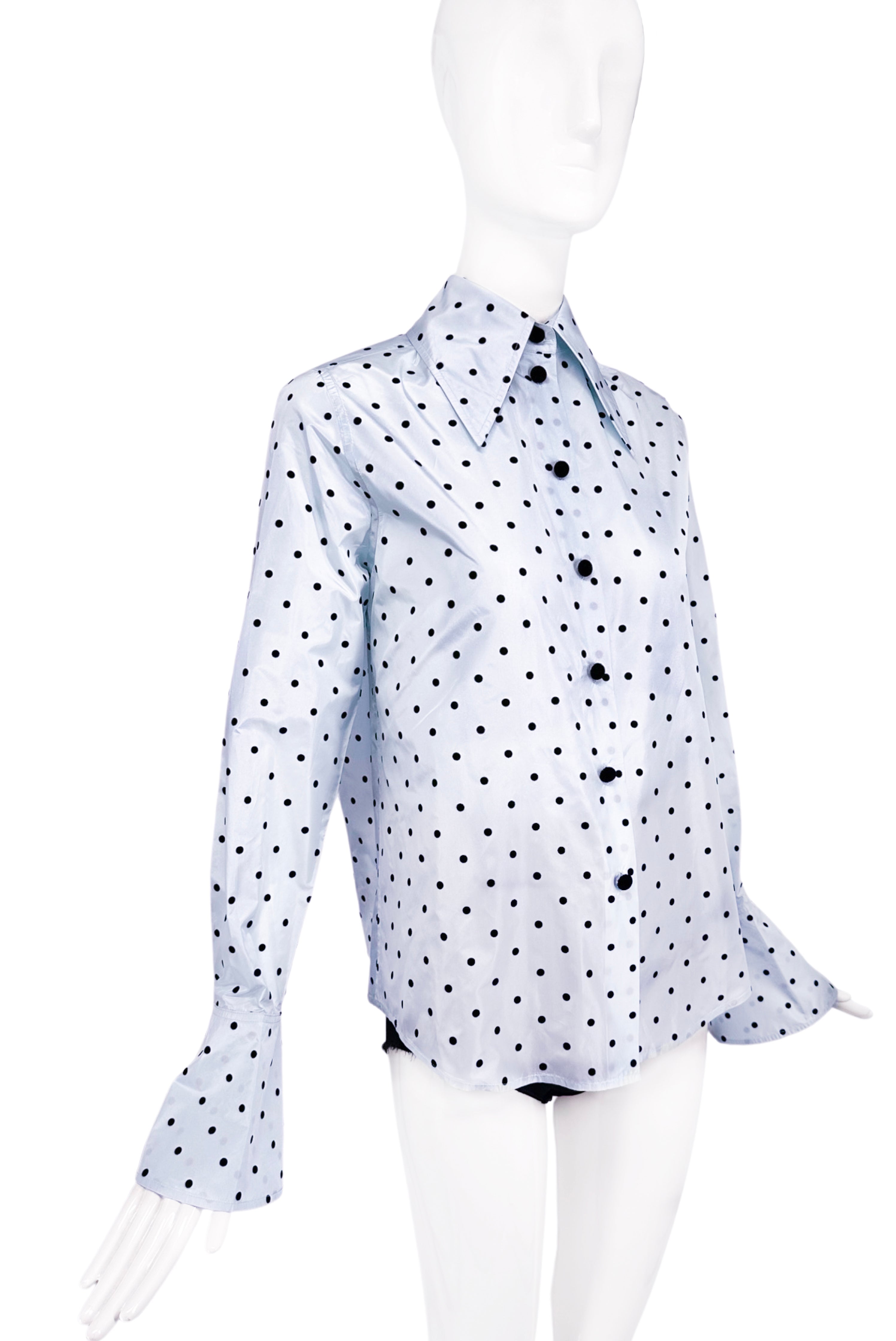 Marc Jacobs Blue & Black Polka Dot Oversize 1970's Collar with Flare Sleeve Detail Shirt