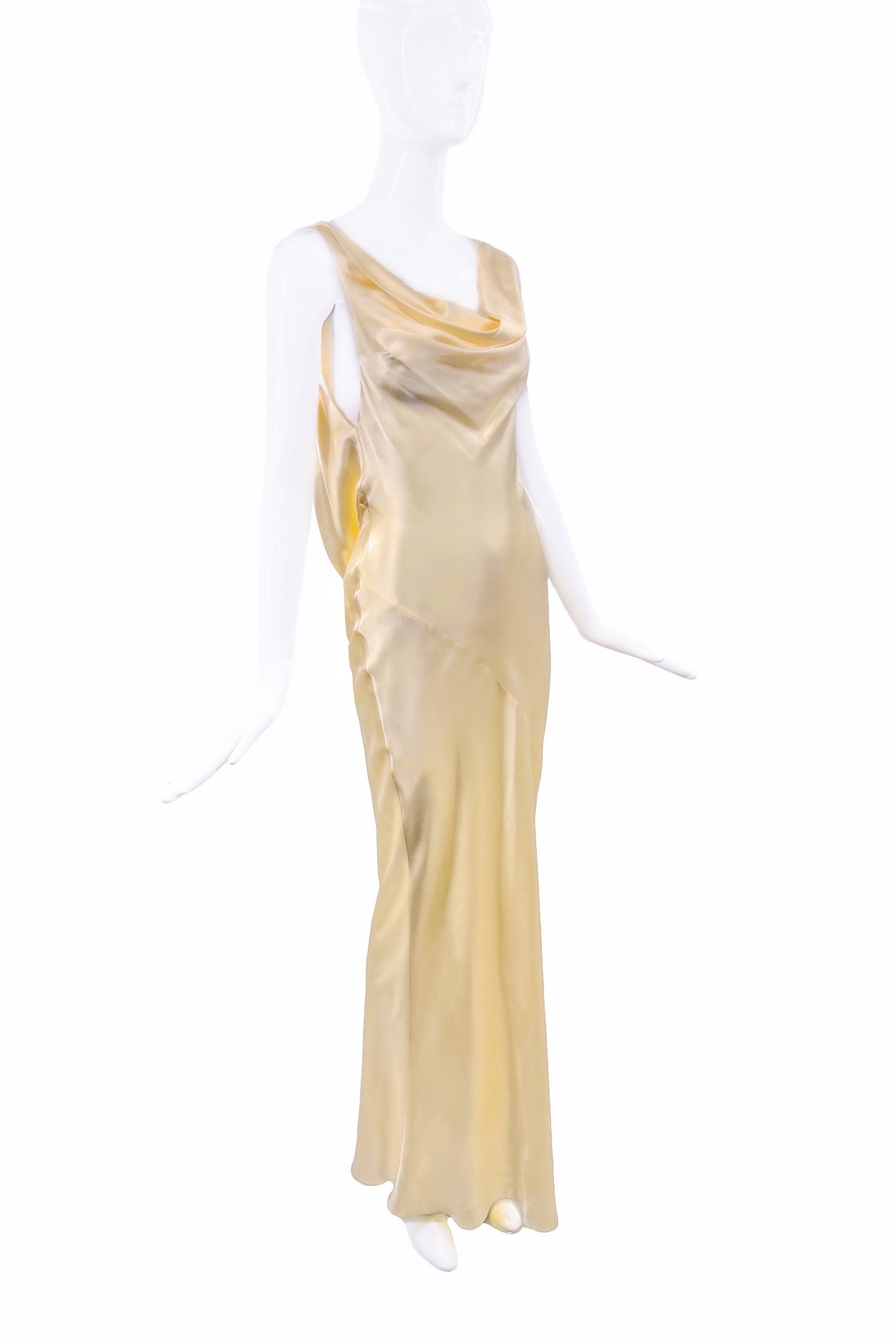 Mirror Palais Yellow Silk Open Back Draped Dress Gown
