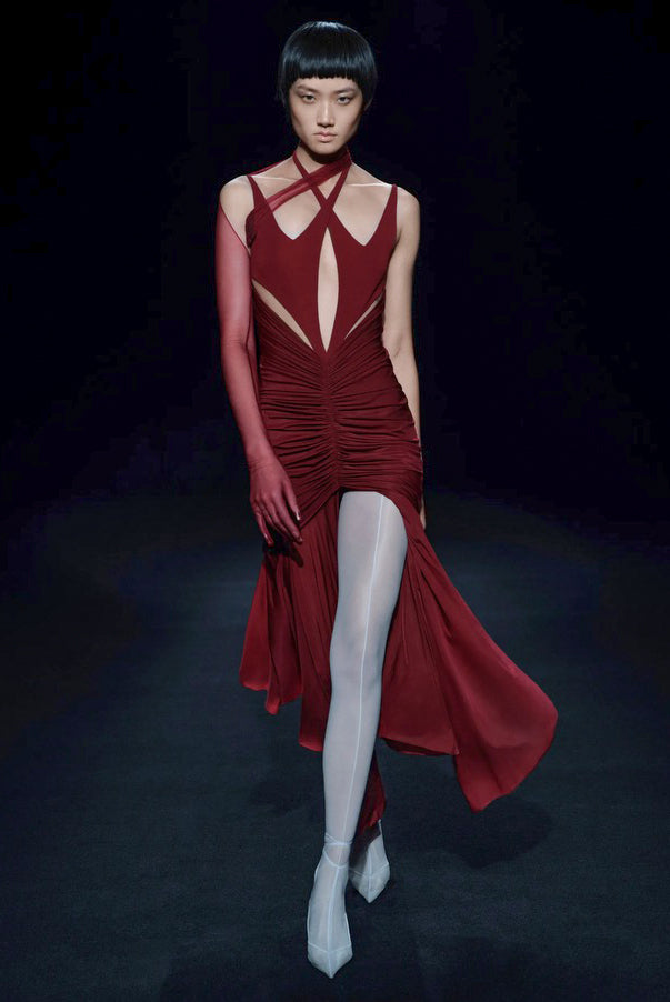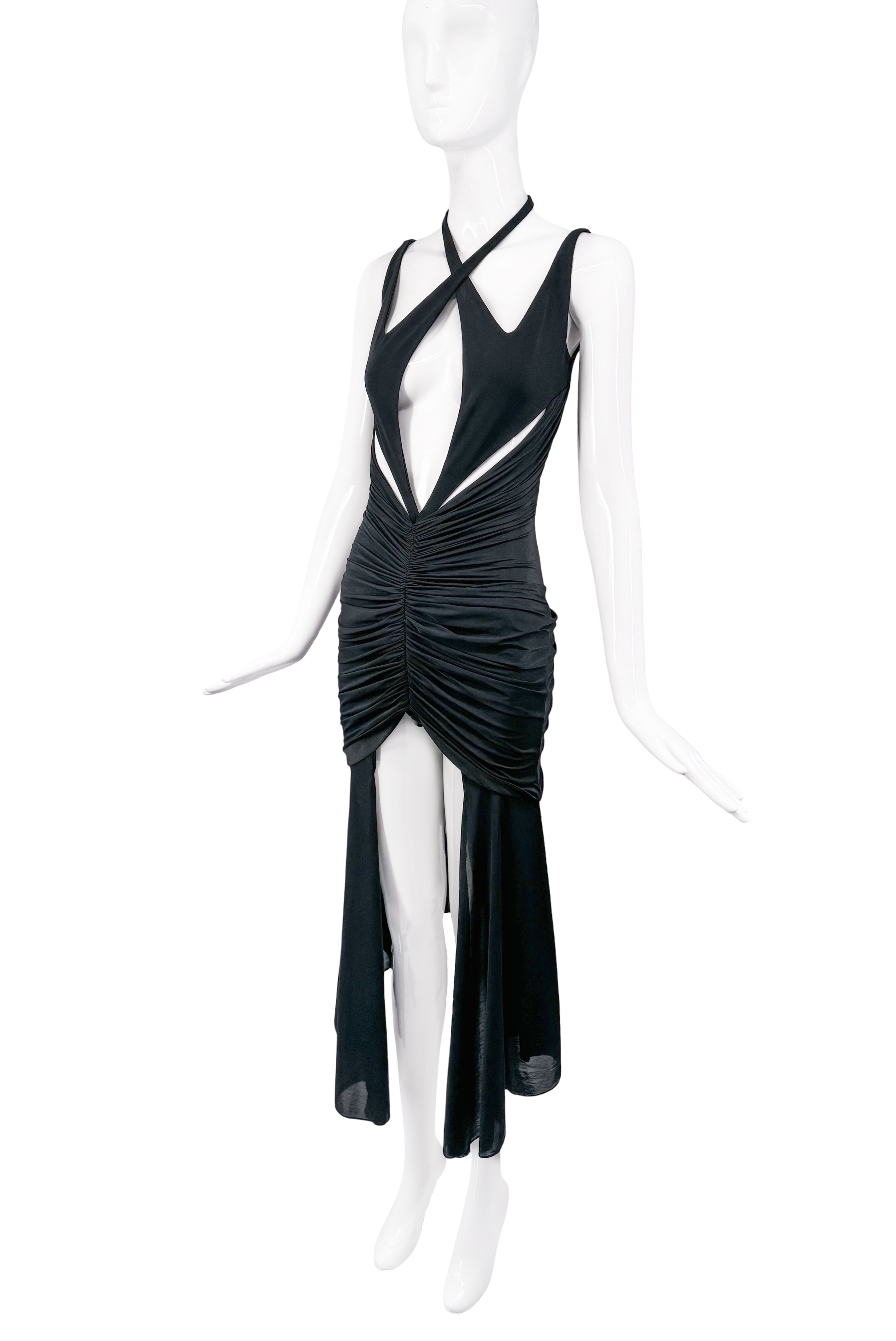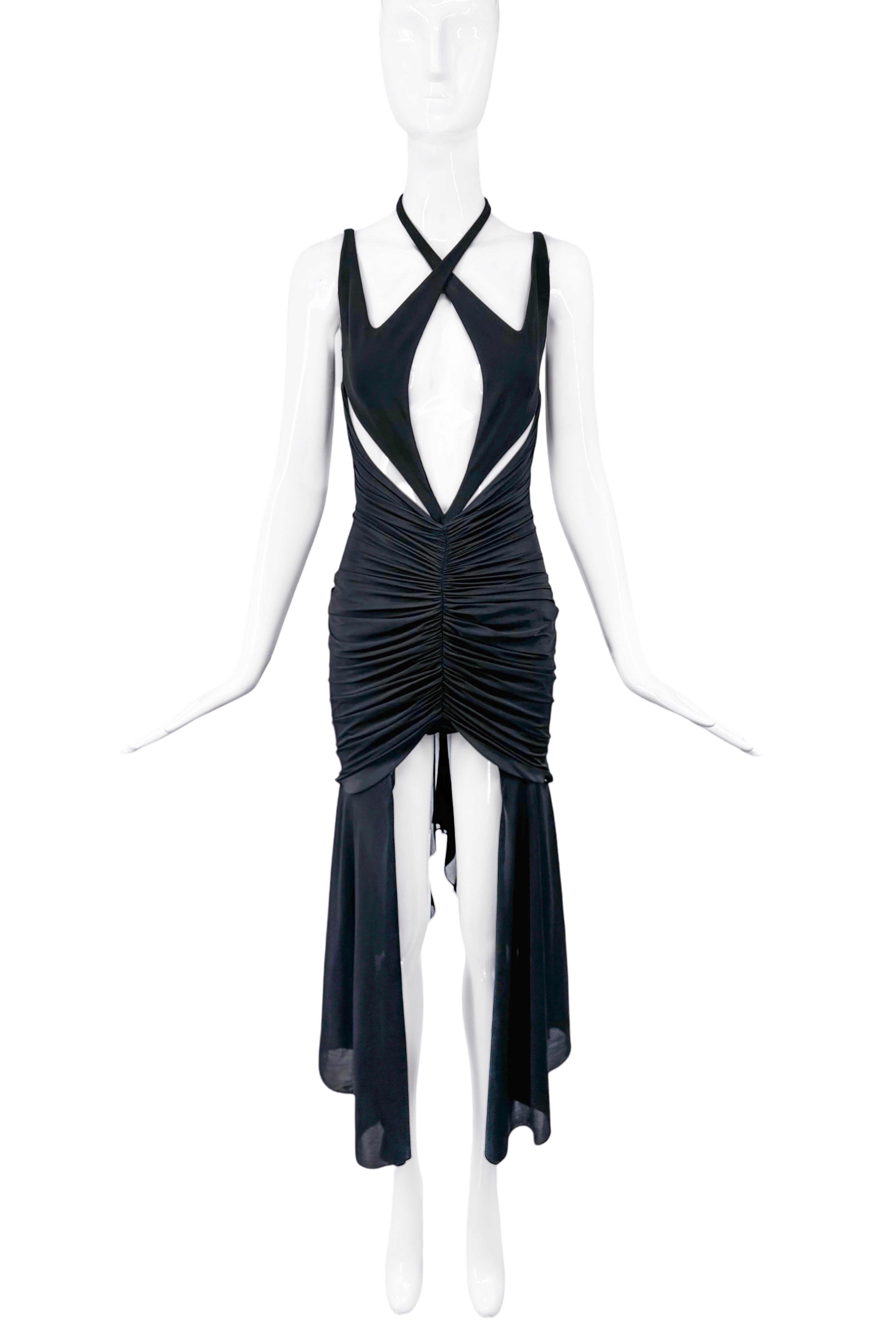 Mugler Black Cut Out Ruched Long Panel Halter Neck Dress Gown