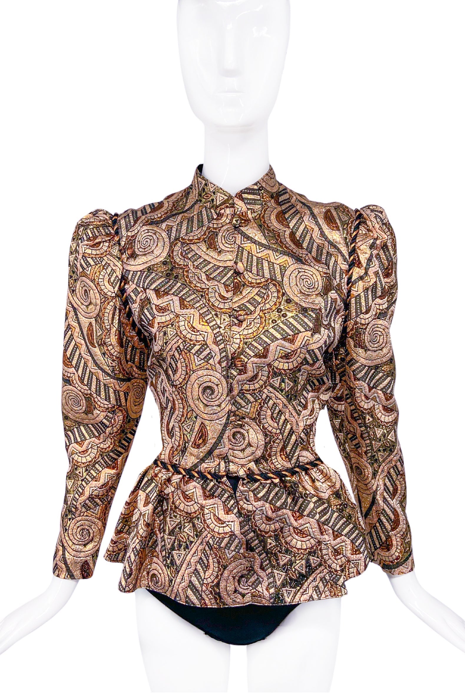 Oleg Cassini Gold Geometric Lurex Print Peplum Jacket