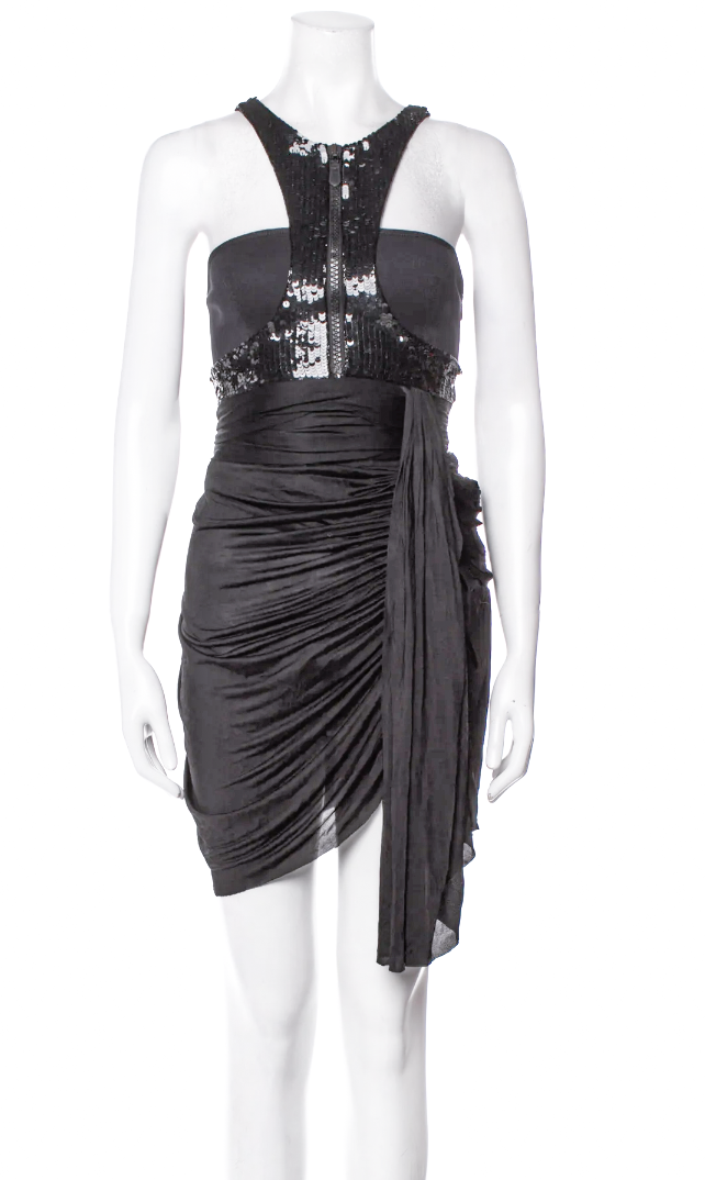 Paco Rabanne Black Sequin Neoprene Racer Tank Zipper Silk Jersey Drapped Dress