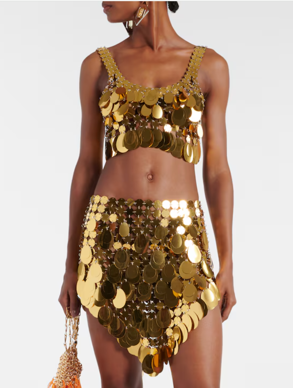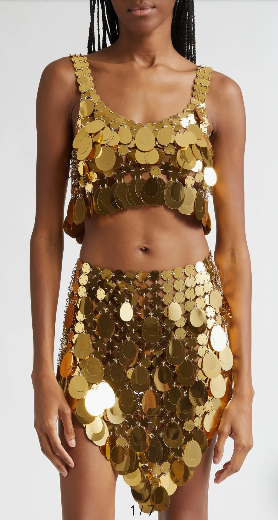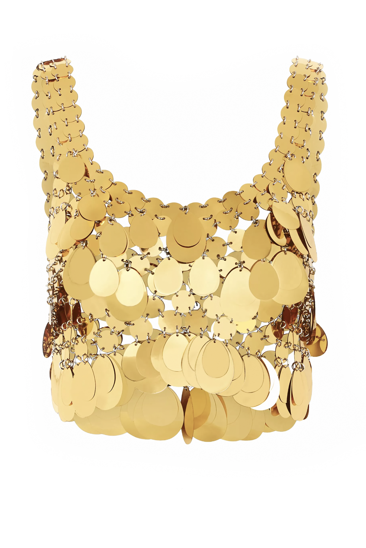 Paco Rabanne Gold Chain Mail Oversized Sequin Crop Top