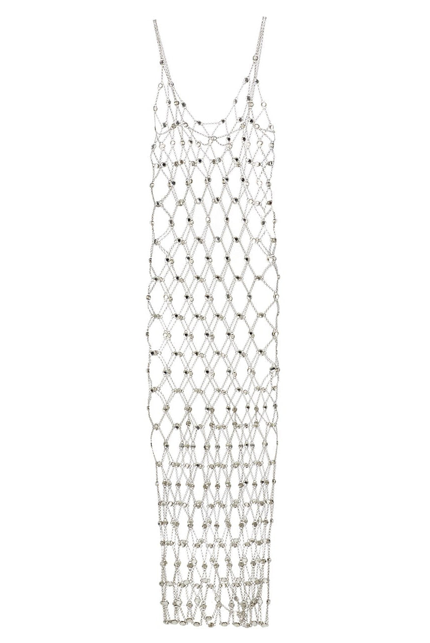 Paco Rabanne Silver Chain Fish Net Mesh Crystal Dress Gown