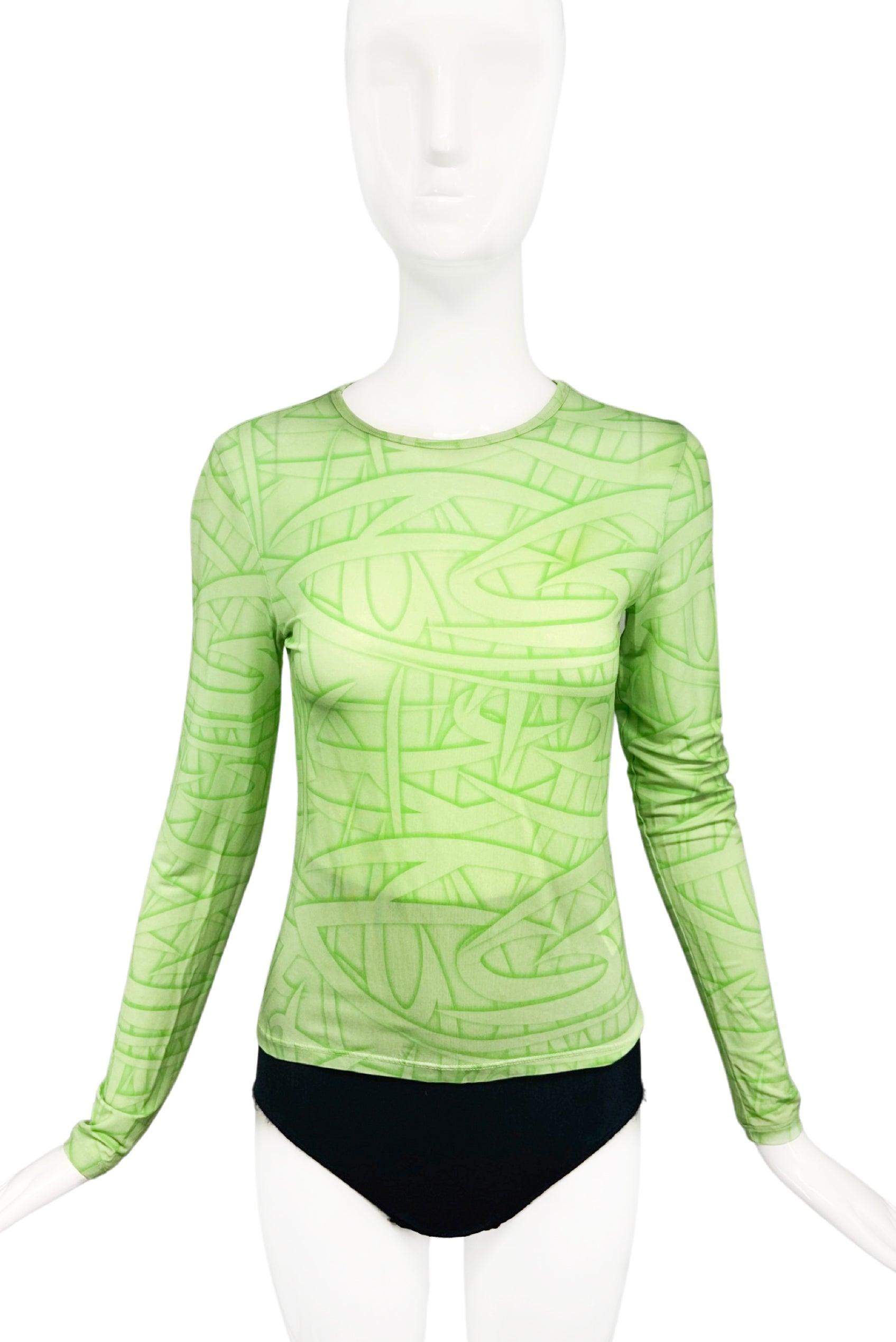 Paloma Wool Barcelona Green Swirl Print Crop Top with Front Gathering