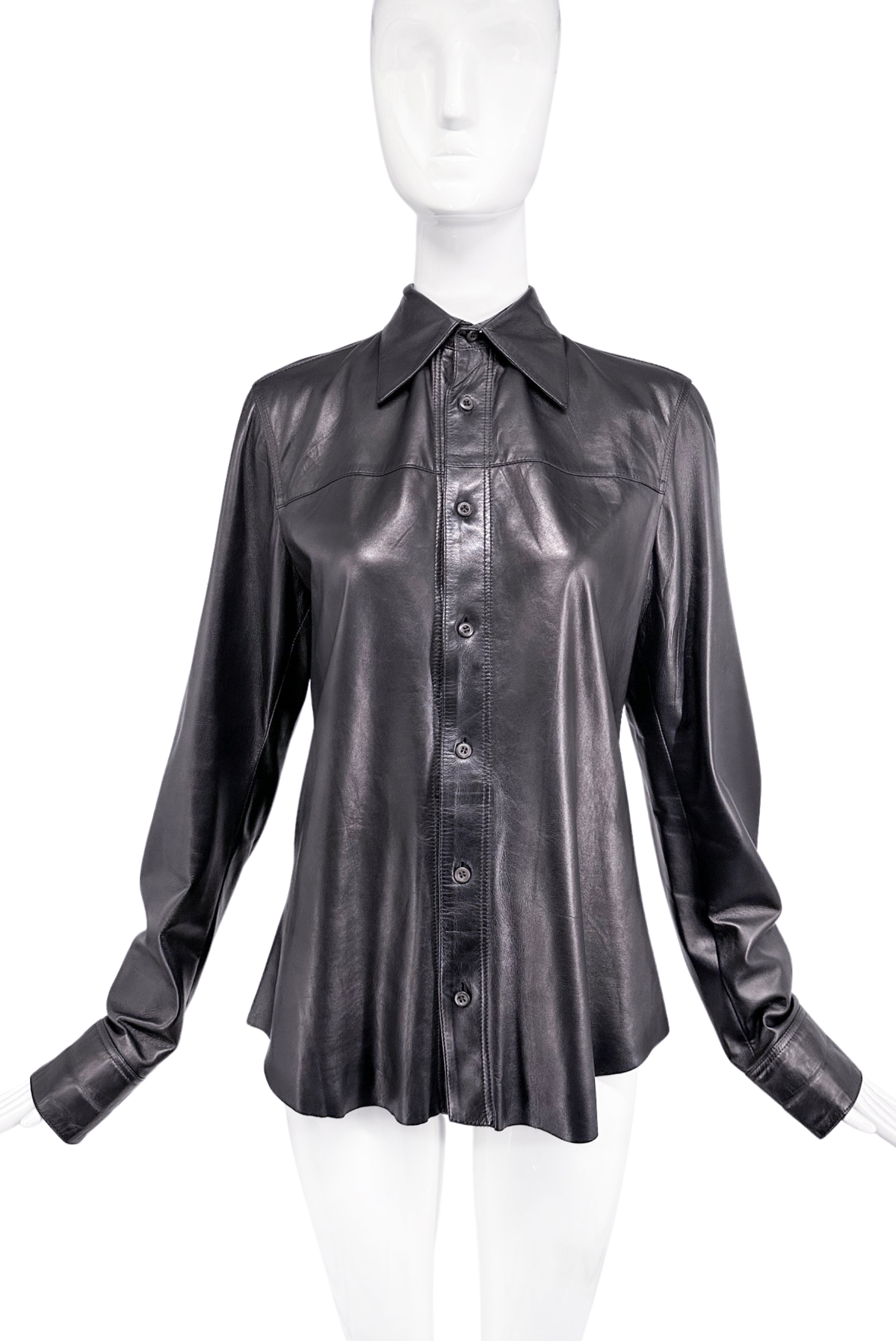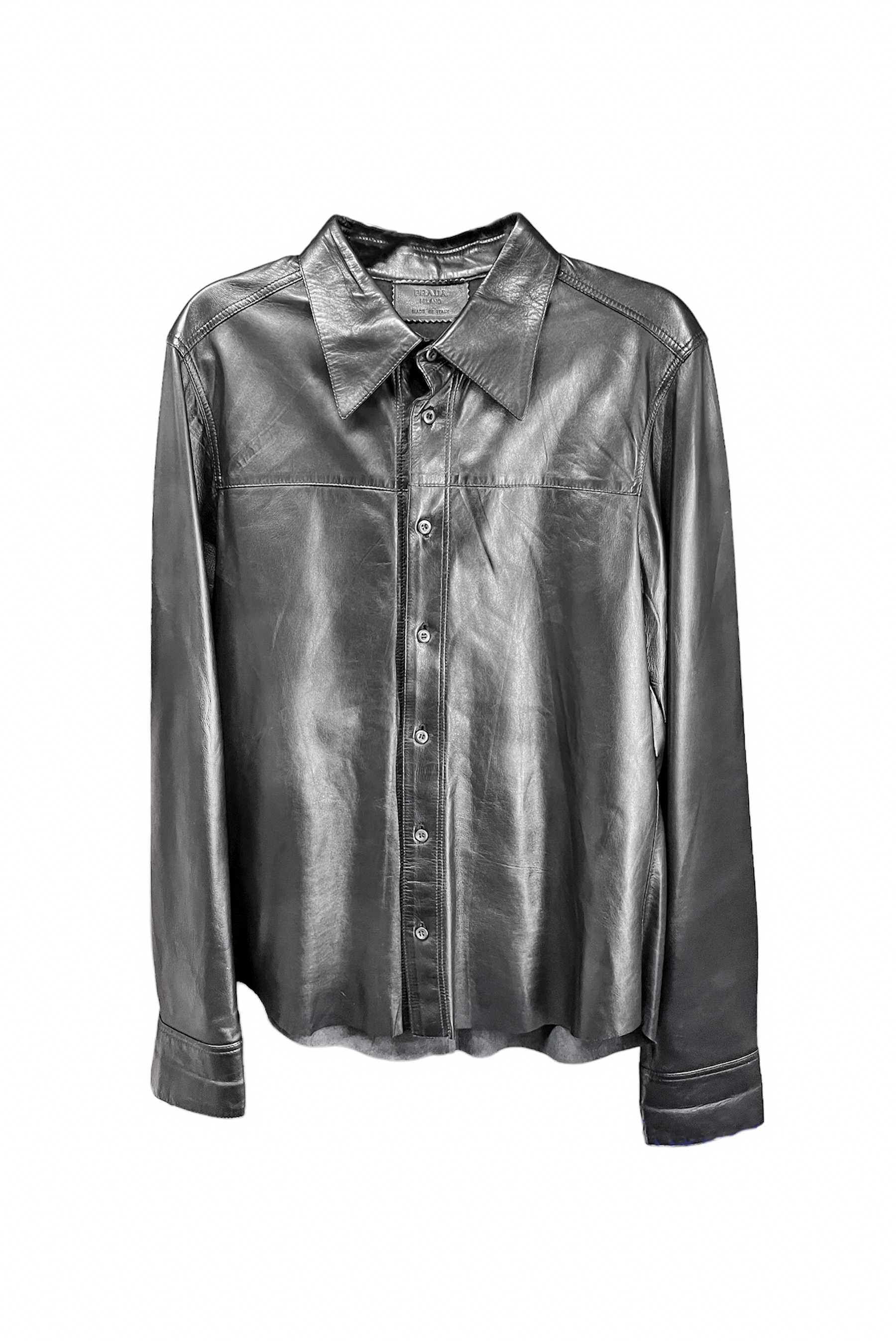 Prada Black Leather Button Down Shirt