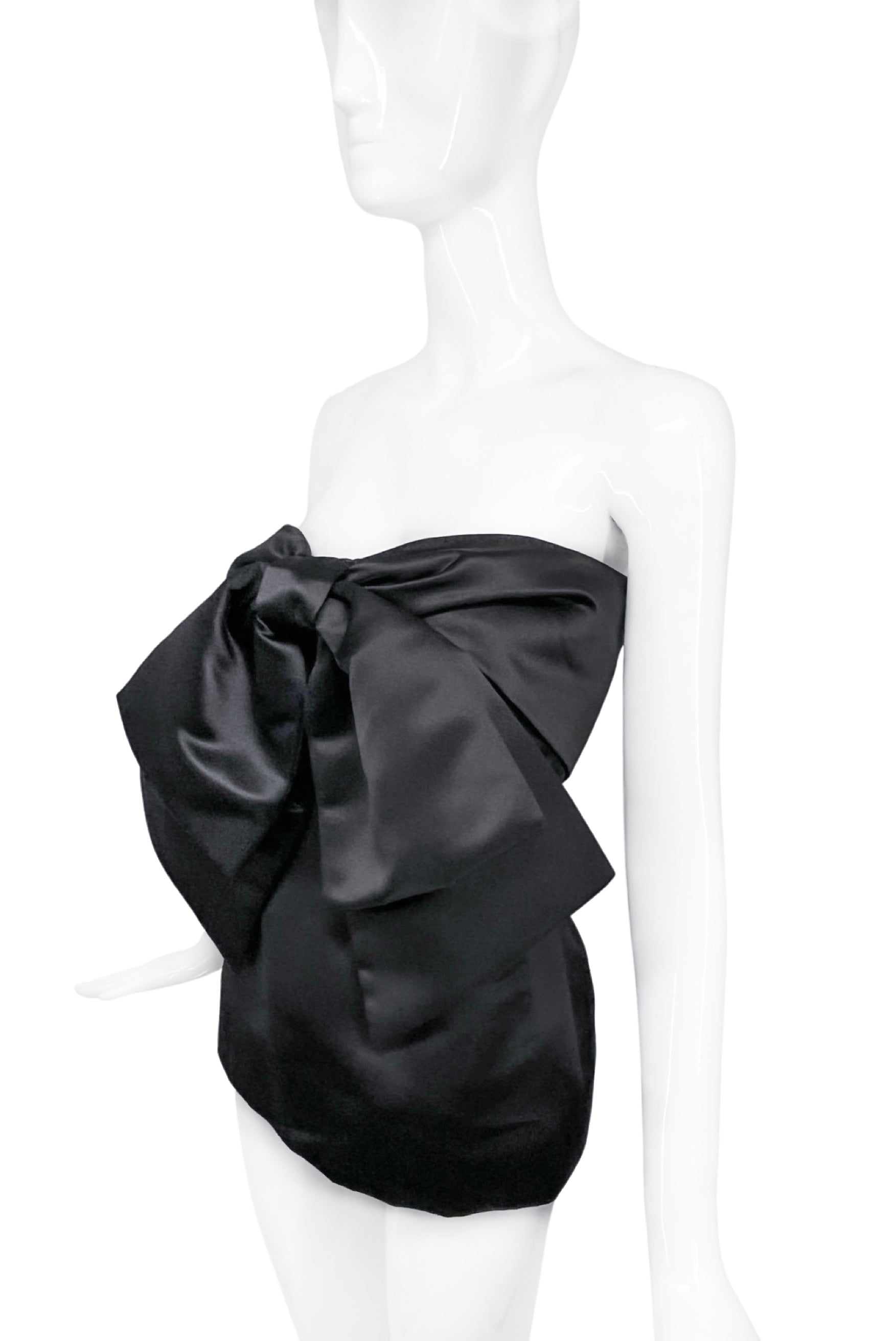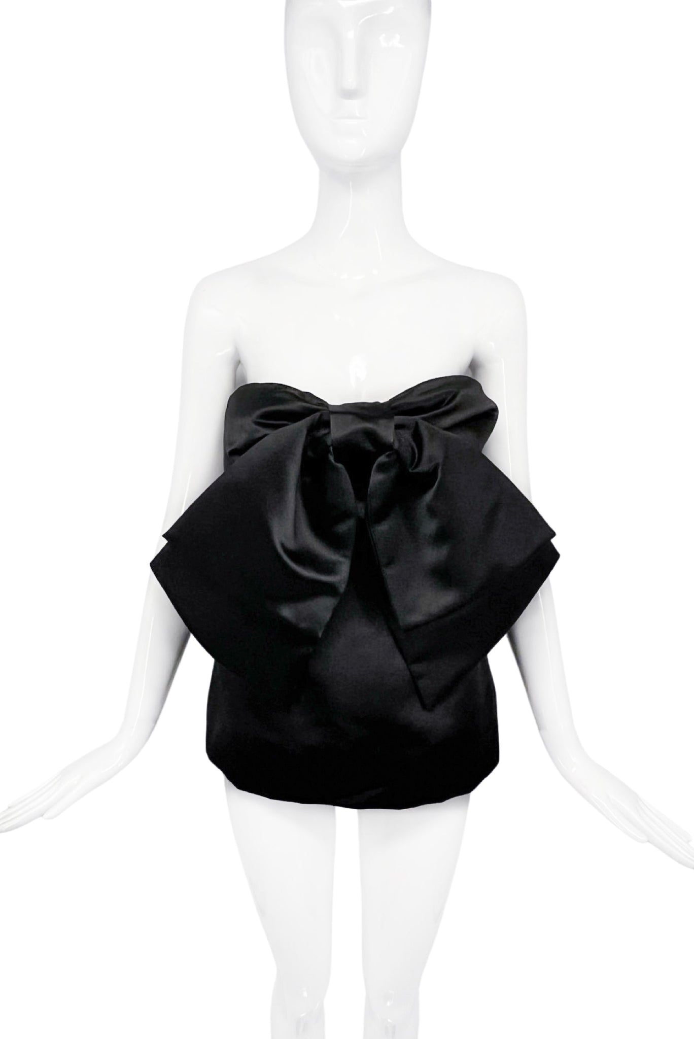 Richard Quinn Black Satin Oversized Bow Corset Top