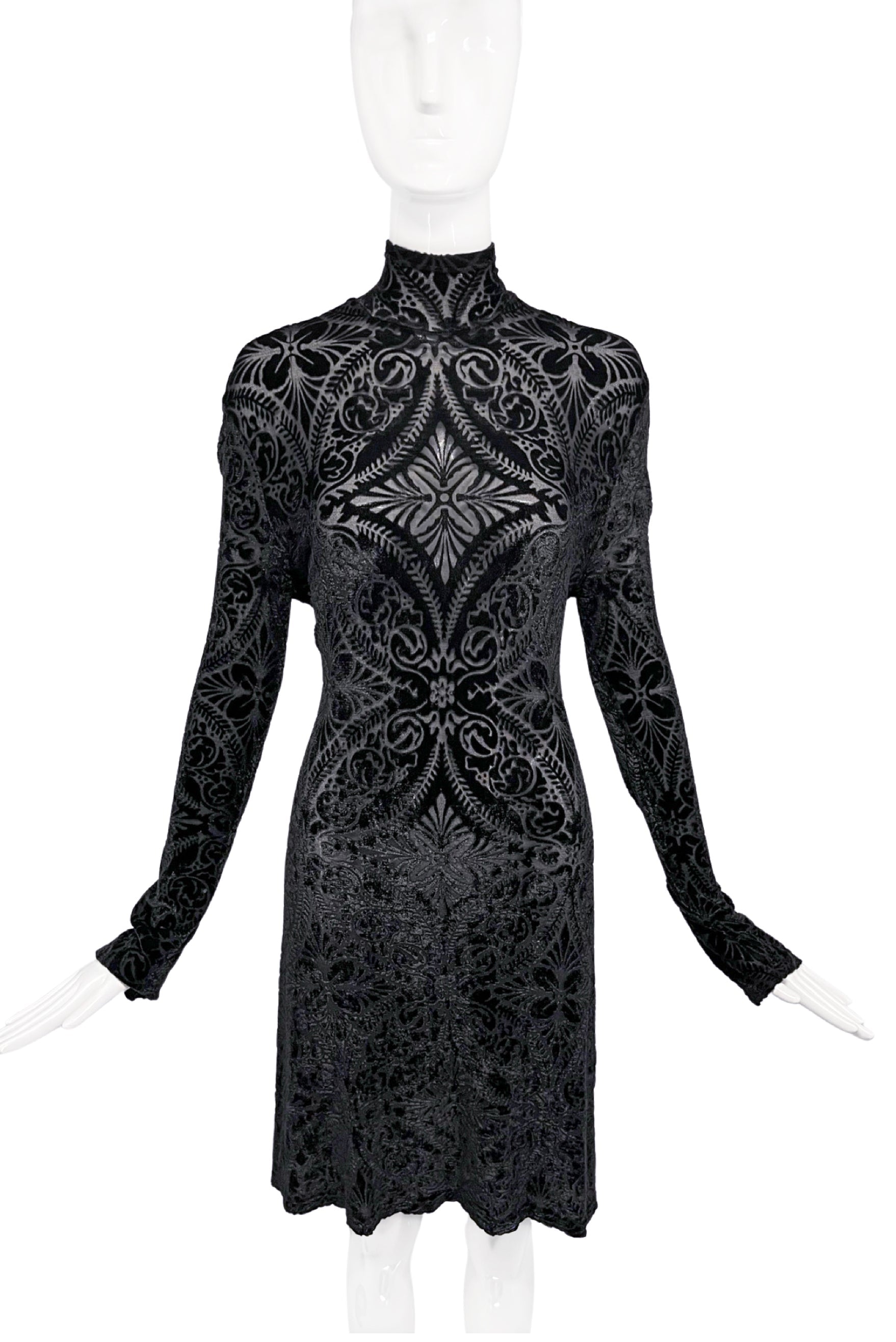 Rifat Ozbek Black Velvet Burnout Art Deco Print Body-Con Dress