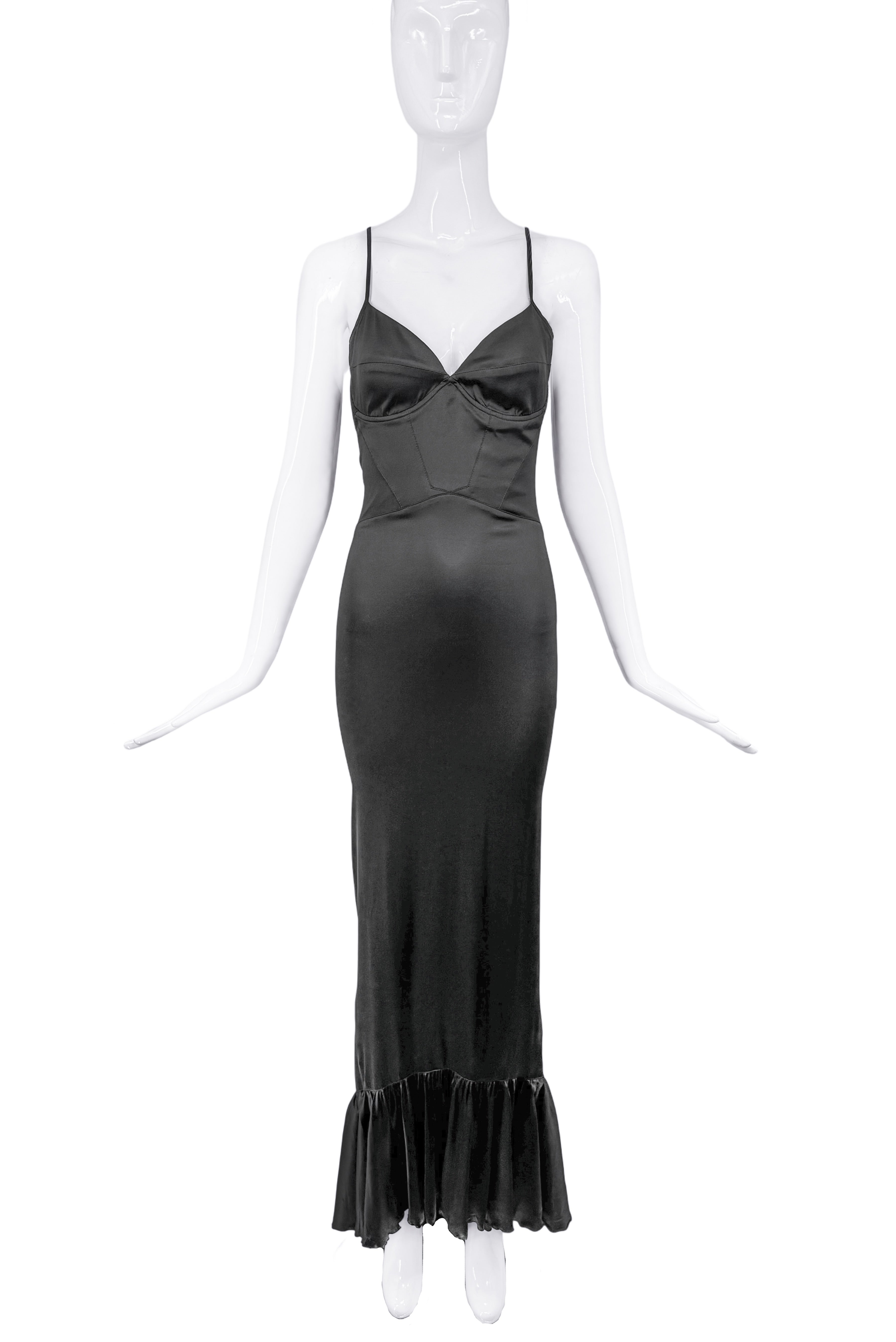Roberto Cavalli Black Silk Stretch Fish Tail Slip Dress Gown