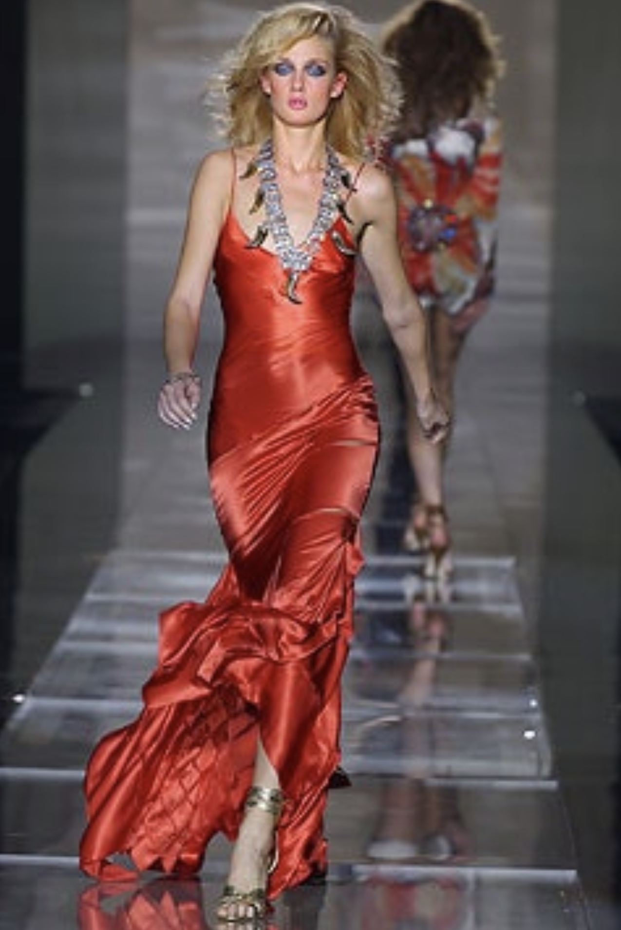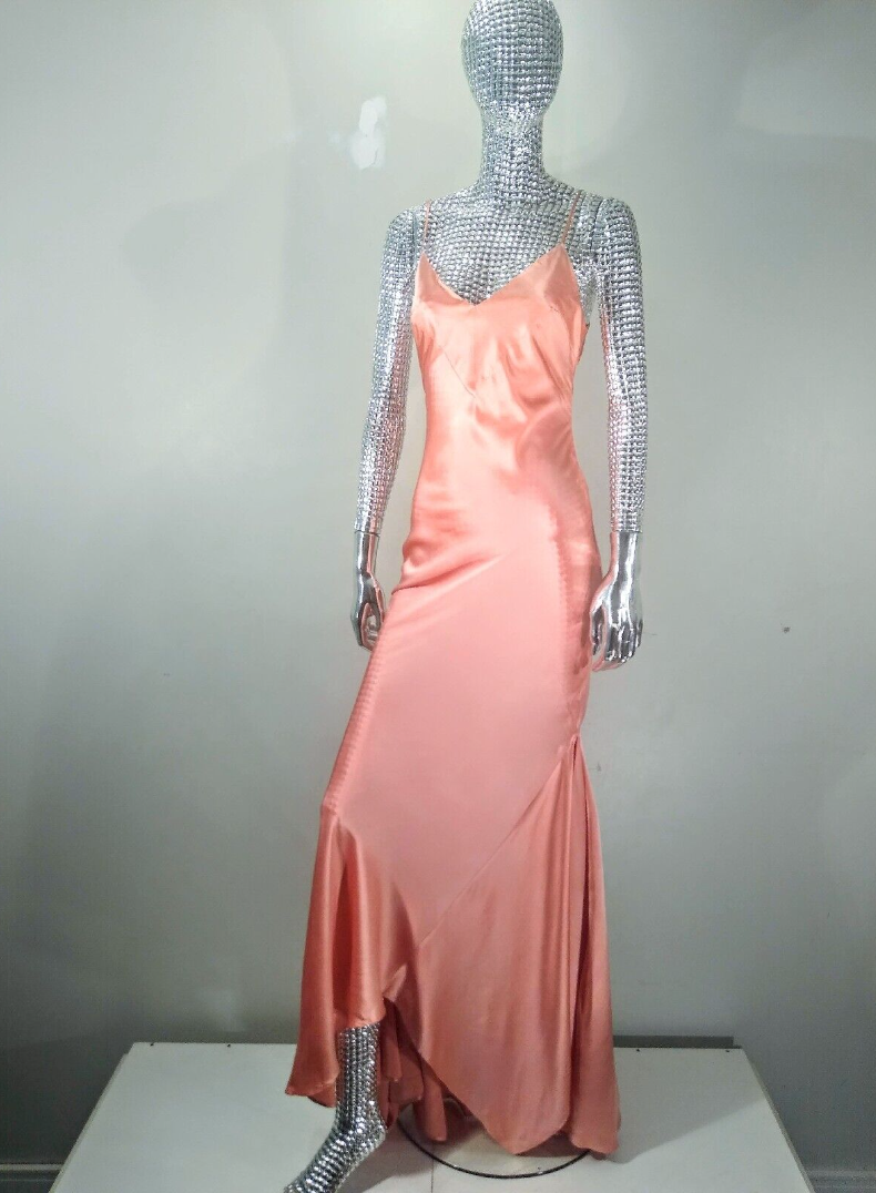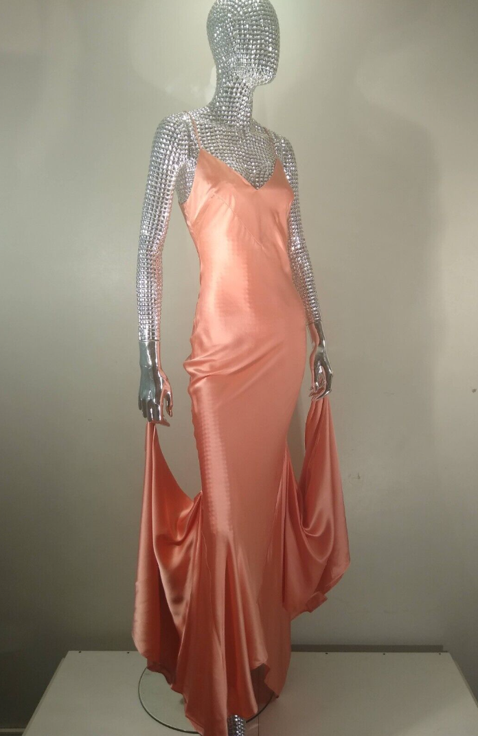 Roberto Cavalli Salmon Pink Silk Slip Dress Gown Runway Spring 2004