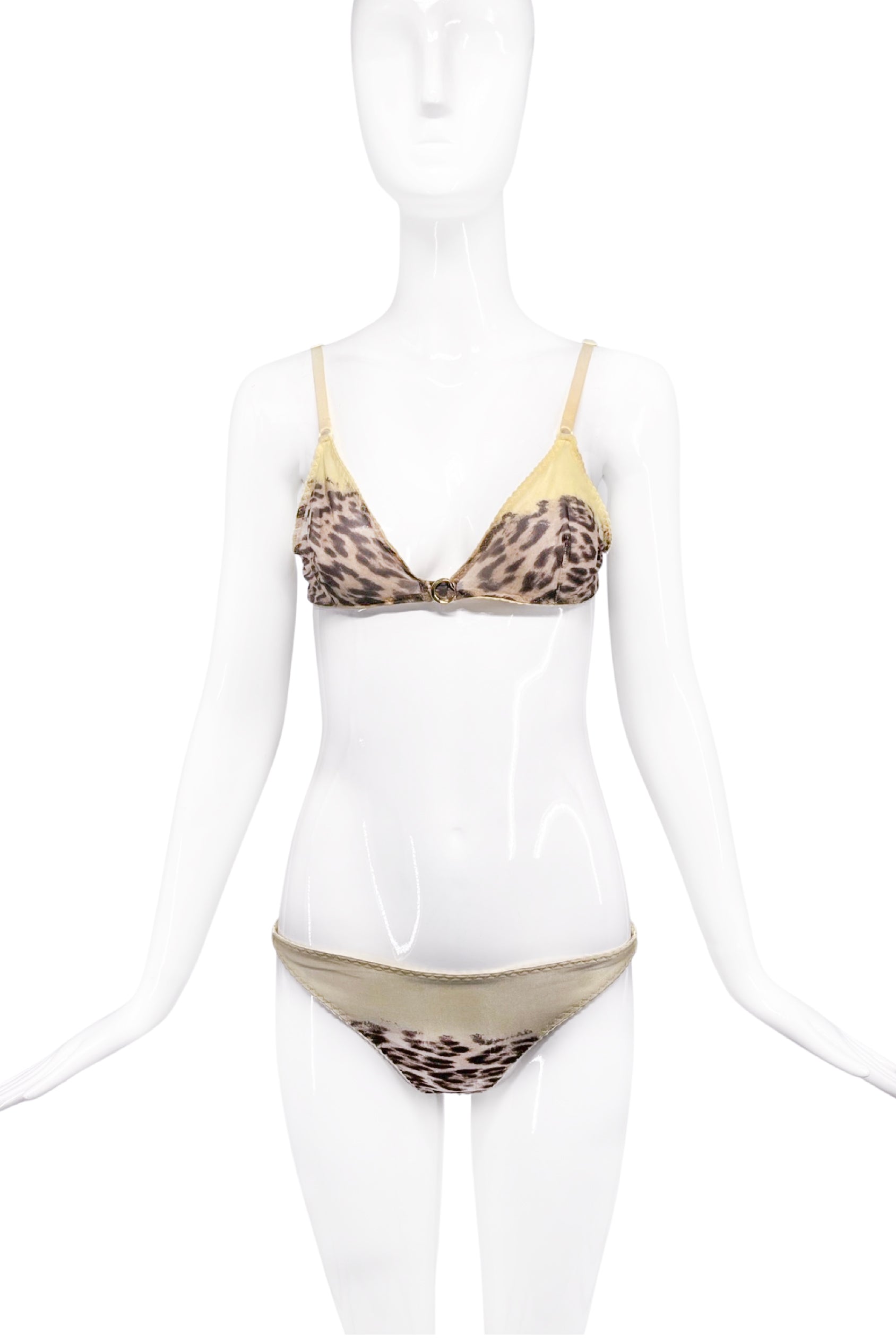 Roberto Cavalli Yellow Leopard Silk Bra Panty Set