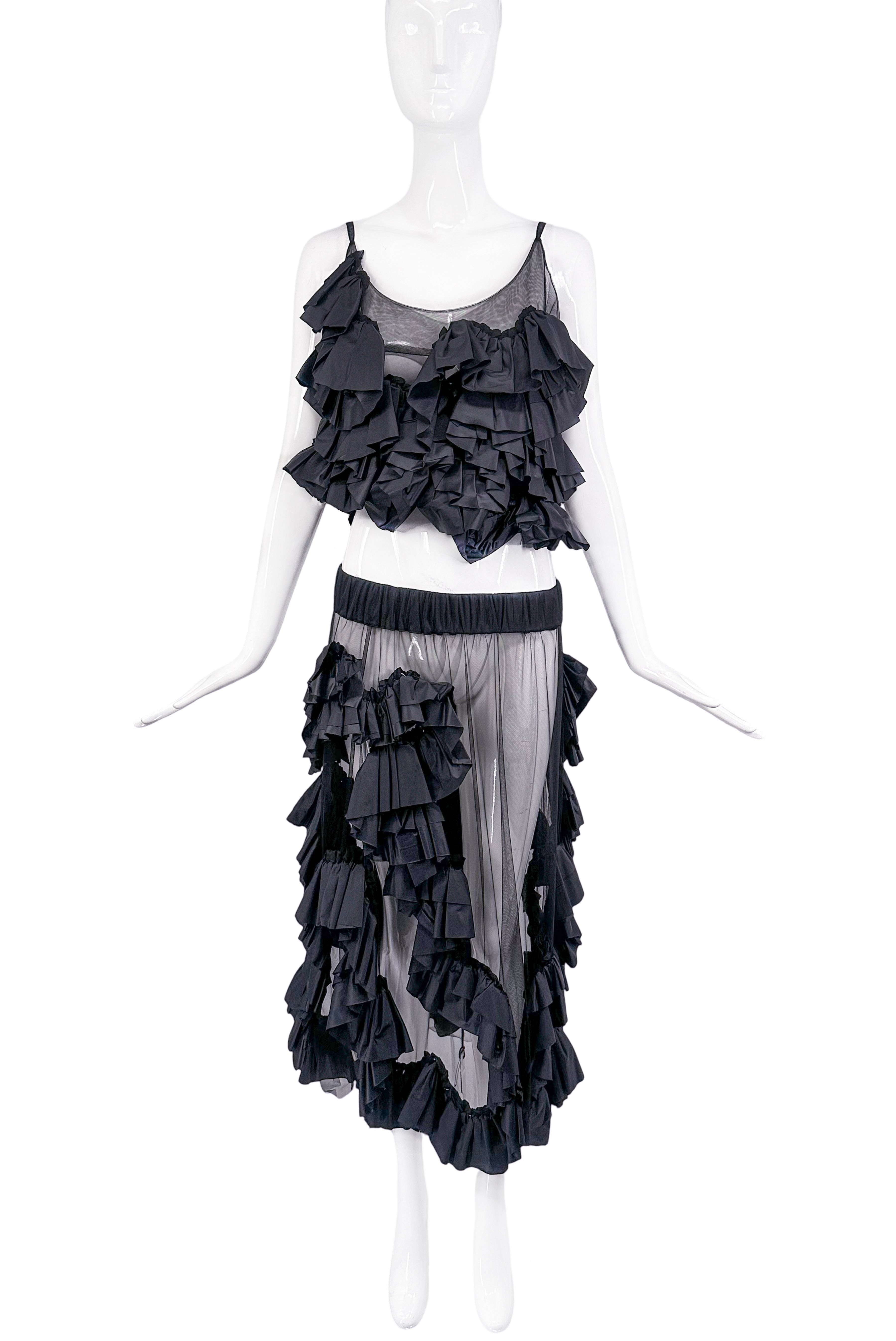 Roberts Wood Black Ruffle Sheer Top and Skirt