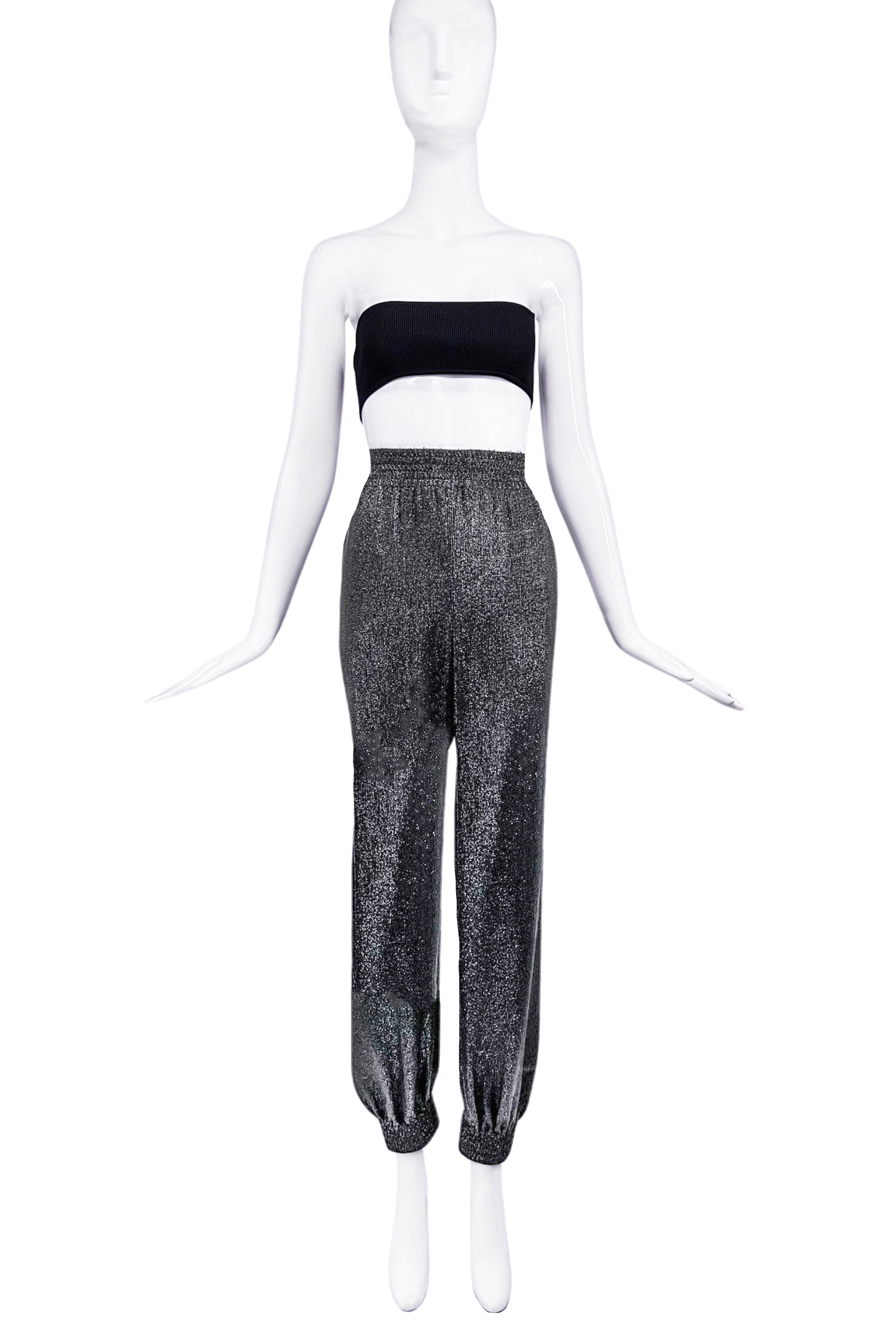 Saint Laurent Black Glitter Lurex Jogger Pants Runway Spring 2020