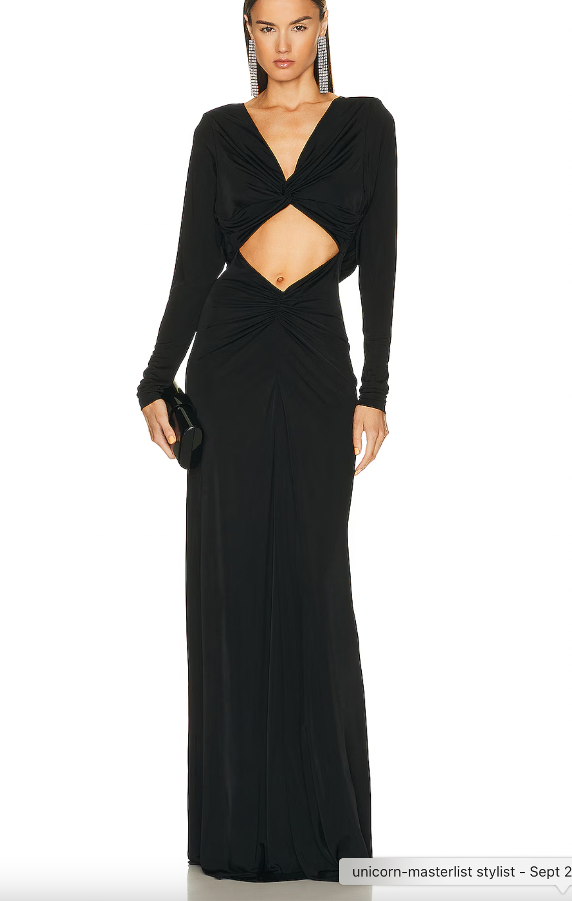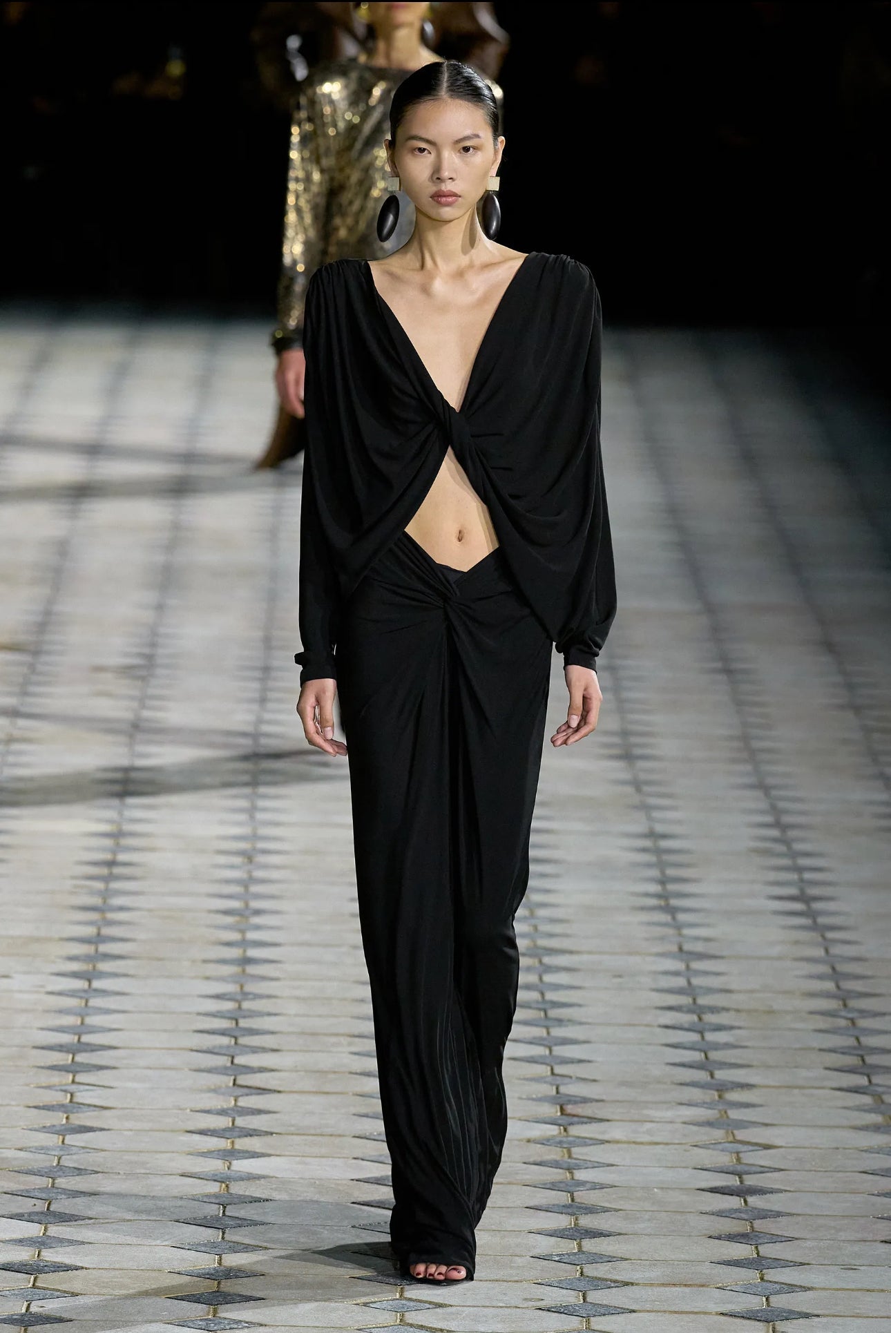 Saint Laurent Black Long Sleeve Cut Out Draped Dress Gown Spring 2023