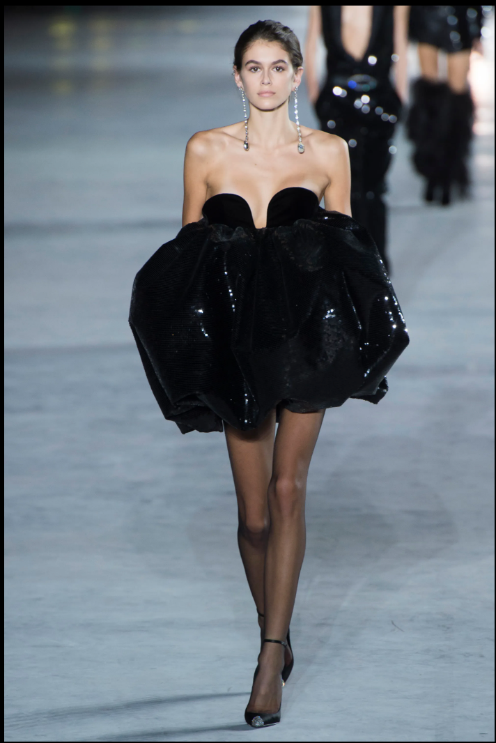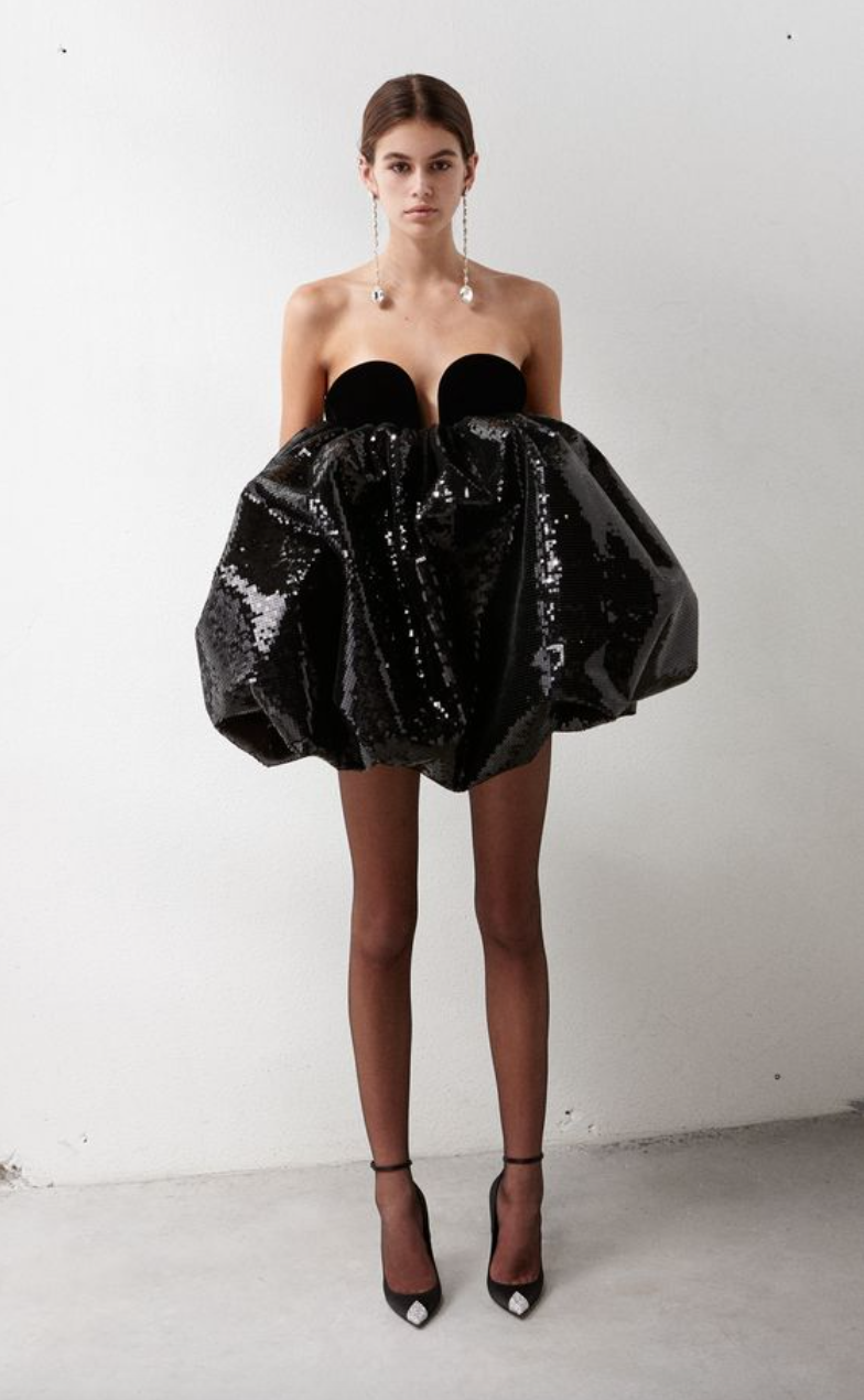 Saint Laurent Black Velvet Heart Shape Neckline Sequin Puff Cocktail Dress Runway 2018