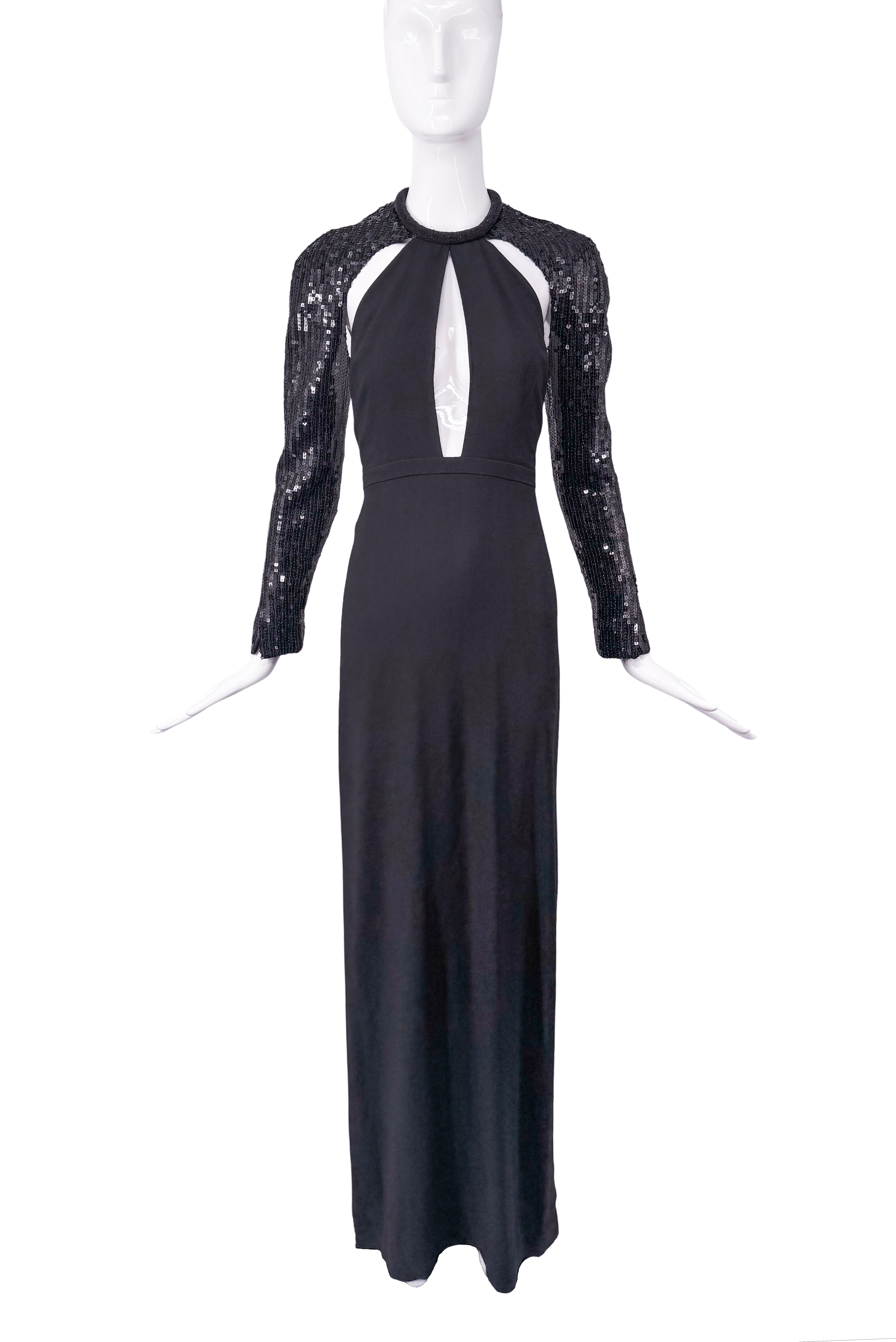 Saint Laurent Black Sequin Sleeve Cut Out Dress Gown
