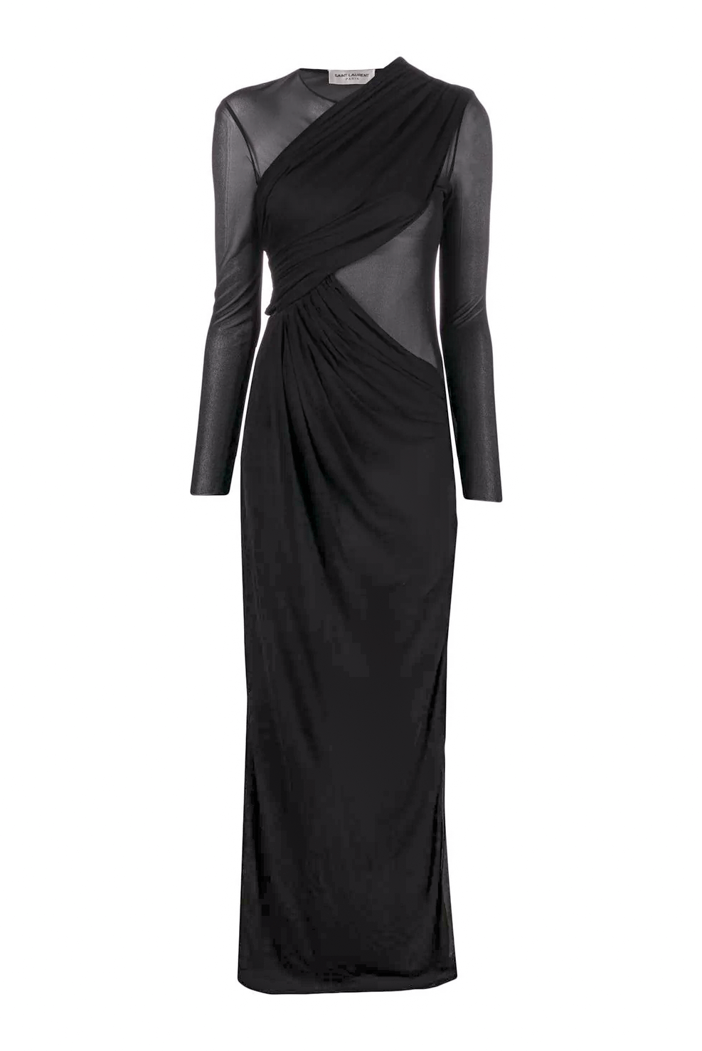 Saint Laurent Black Sheer Panel Cut Out Draped Runway Gown Fall 2022