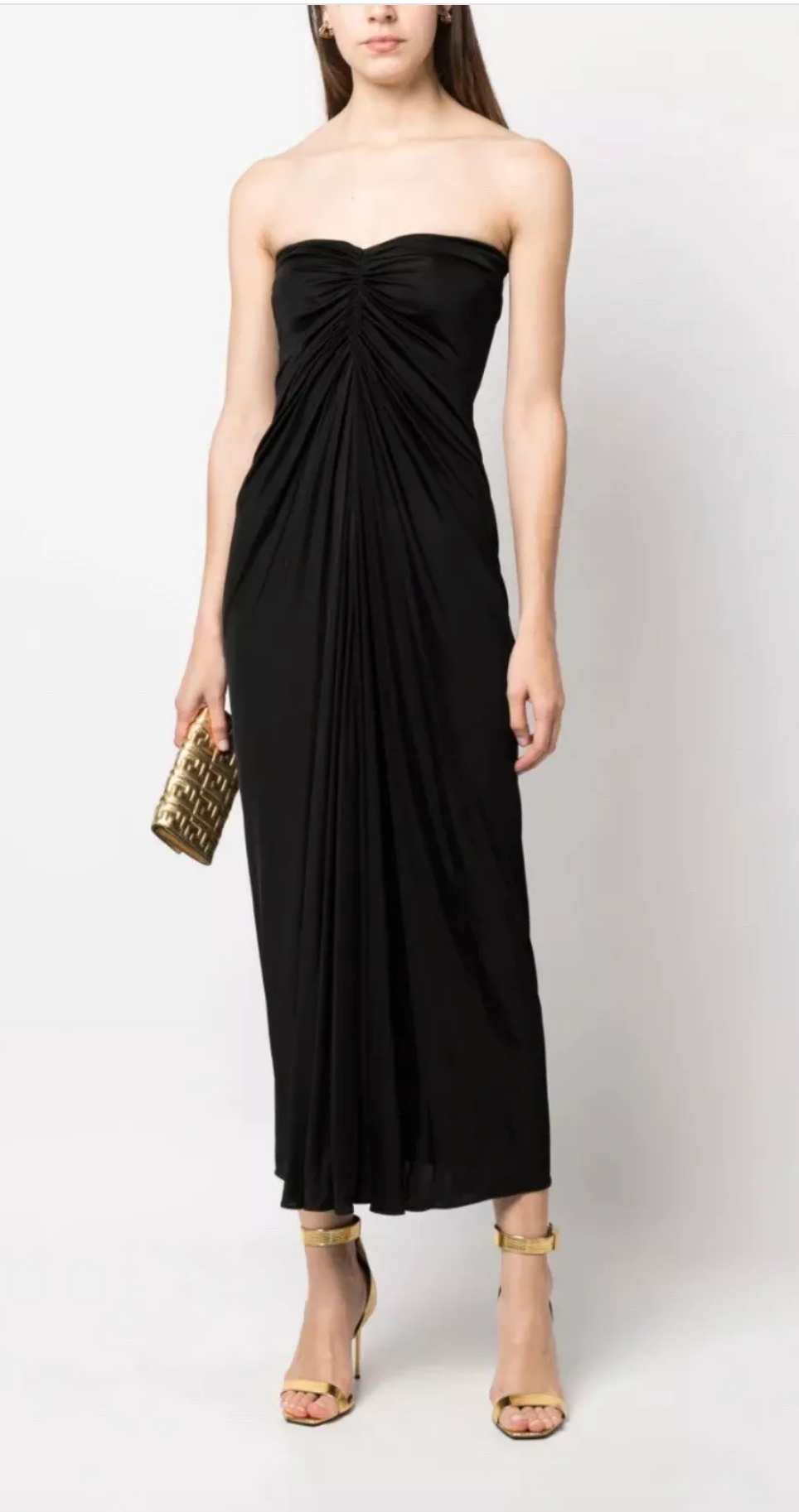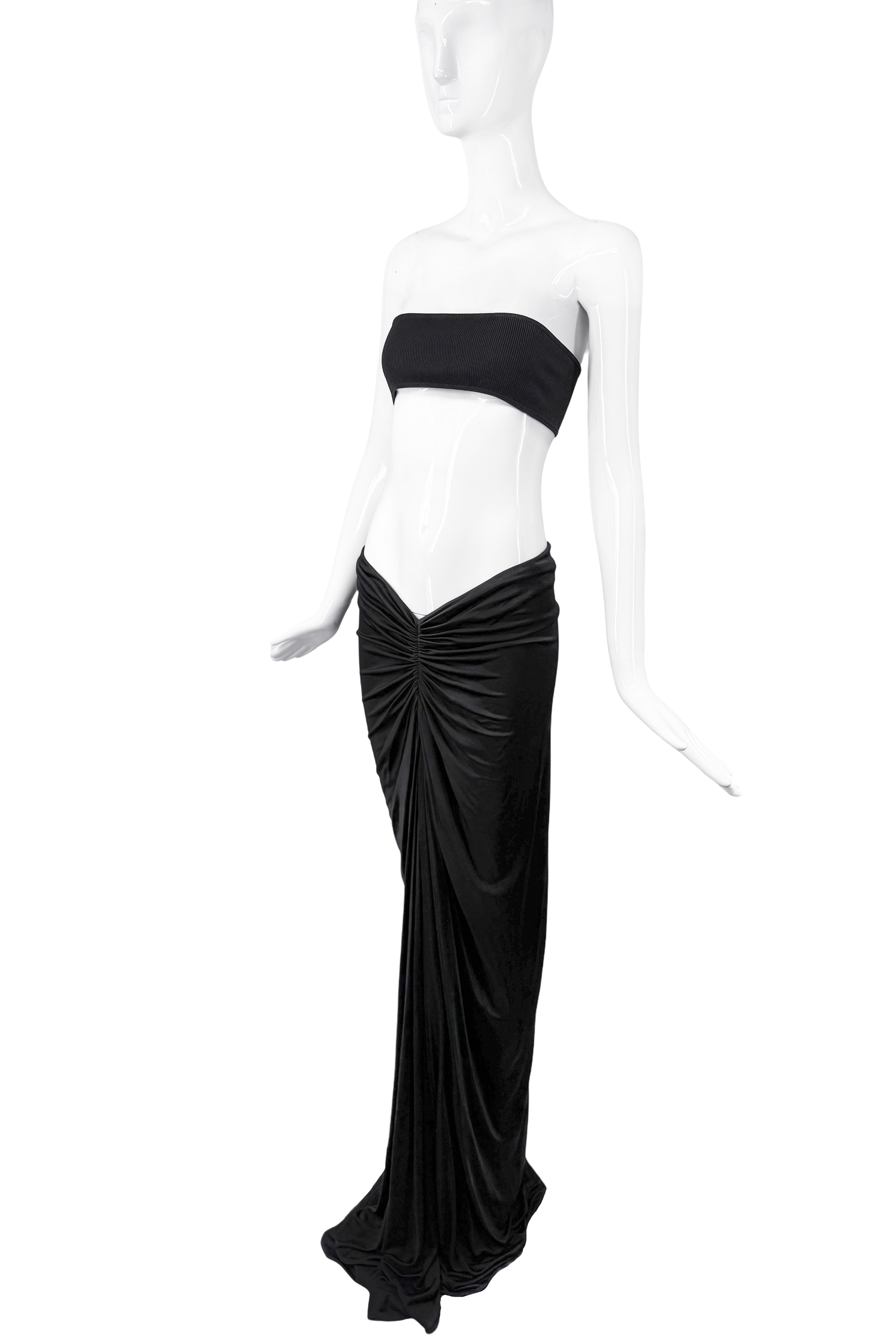 Saint Laurent Black Silk Jersey Stretch Ruched Draped Maxi Skirt