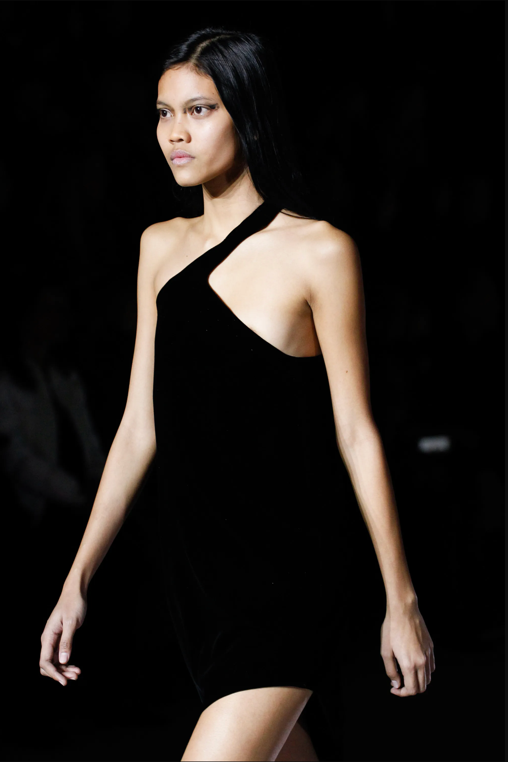 Saint Laurent Black Velvet Asymmetric Strap Mini Dress Fall 2017