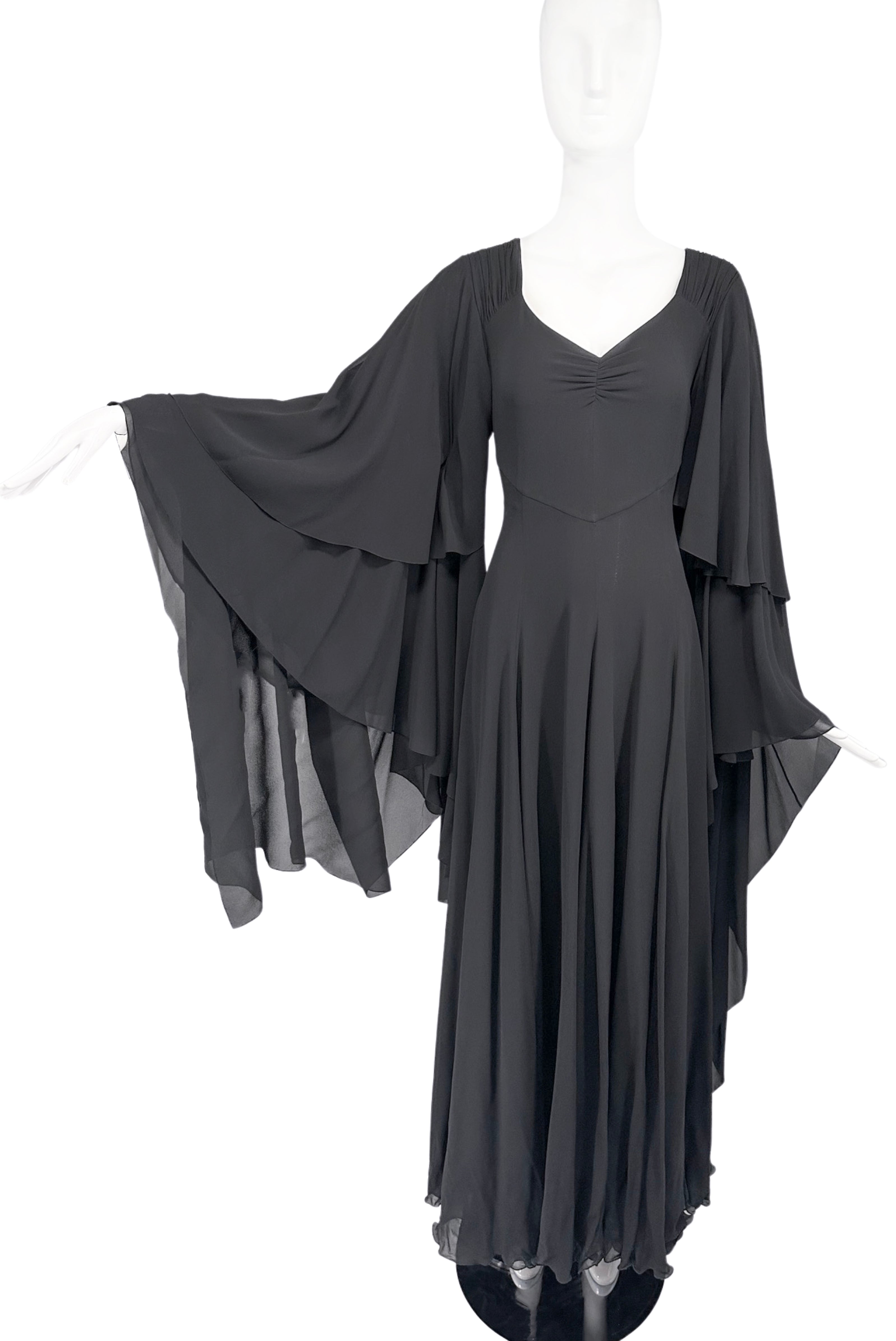 Saint Laurent Paris by Hedi Slimane Black Chiffon Cape Caftan "Stevie Nicks" Gown SS2013
