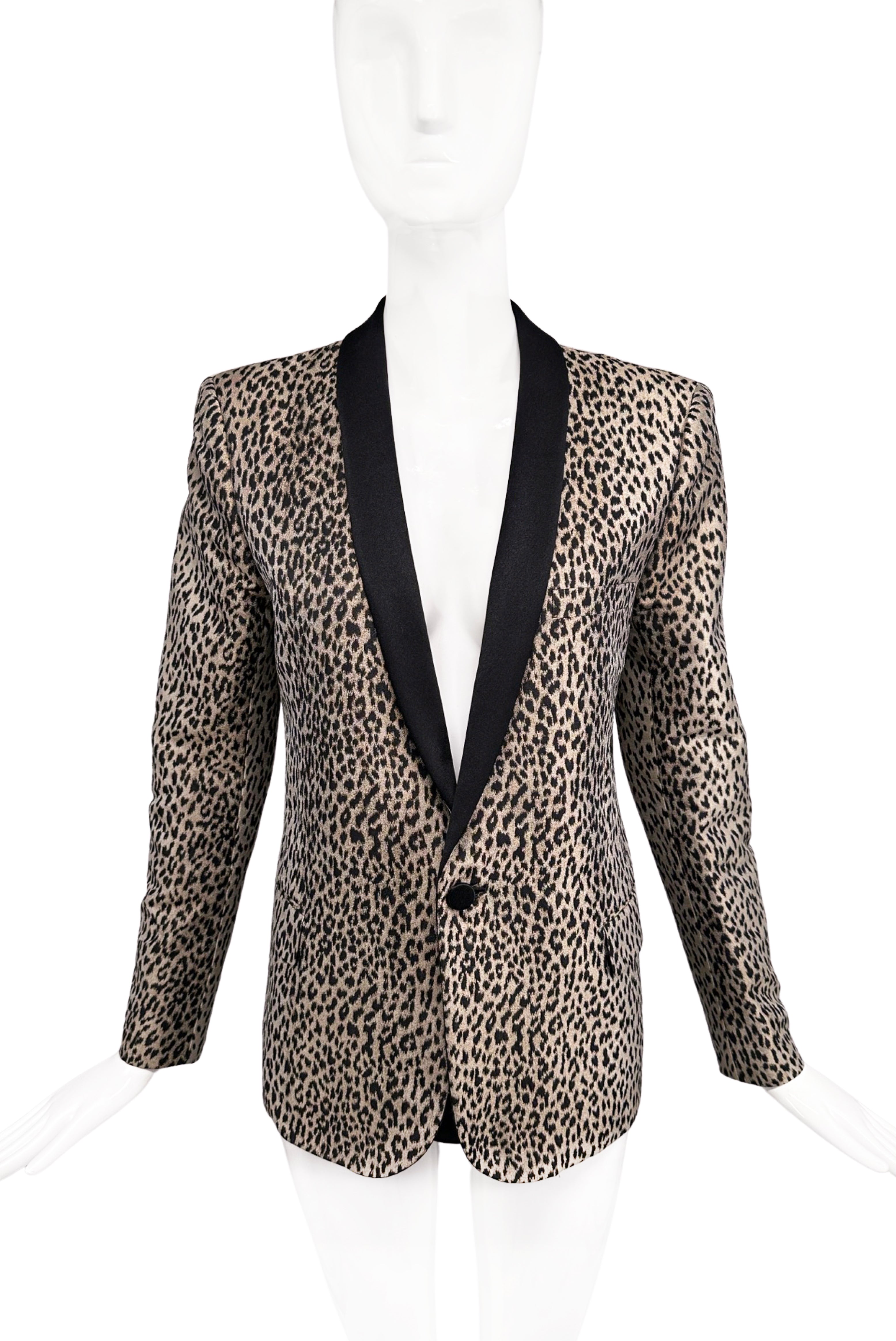 Saint Laurent Paris Gold Lurex Leopard Print Blazer Jacket SS2014