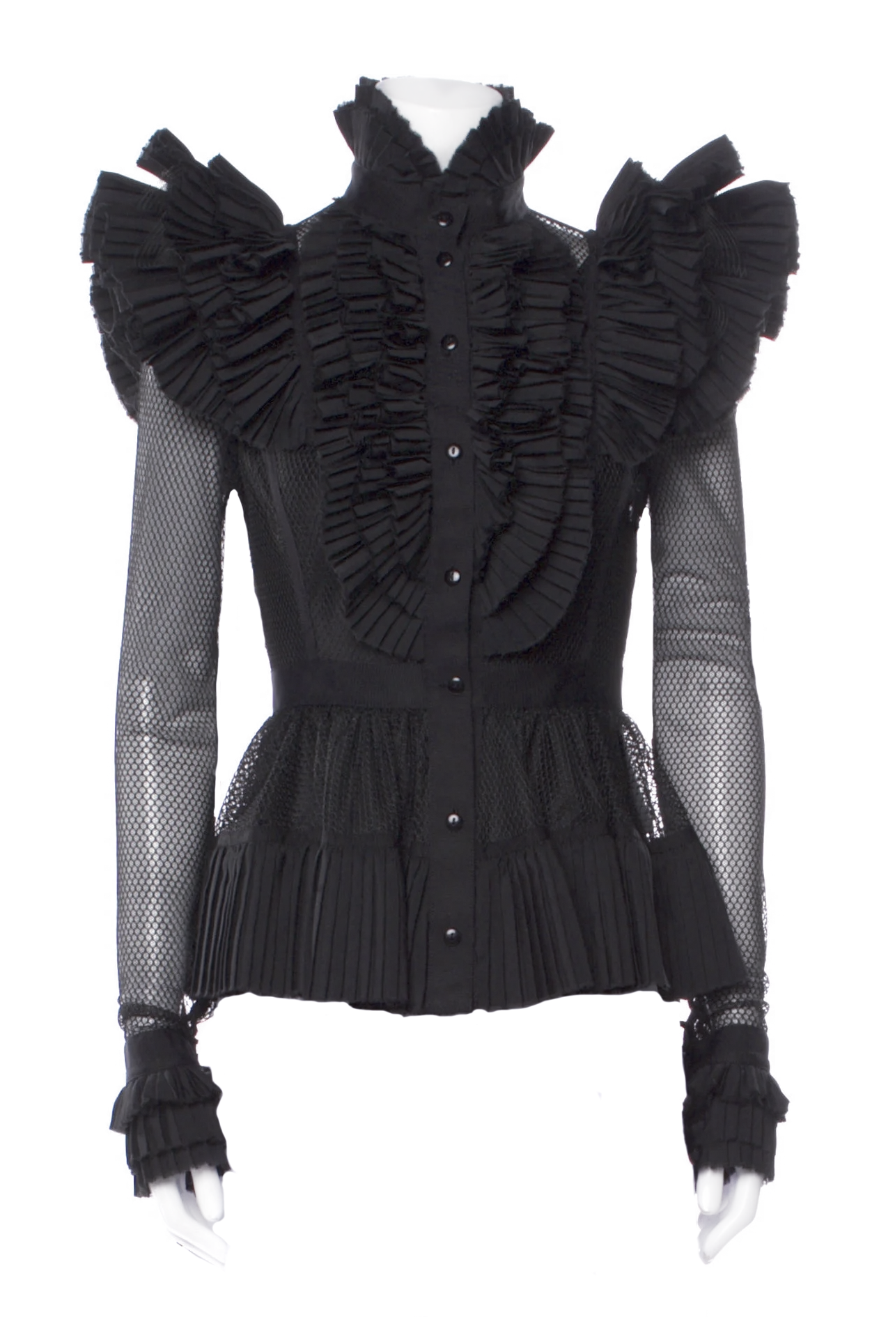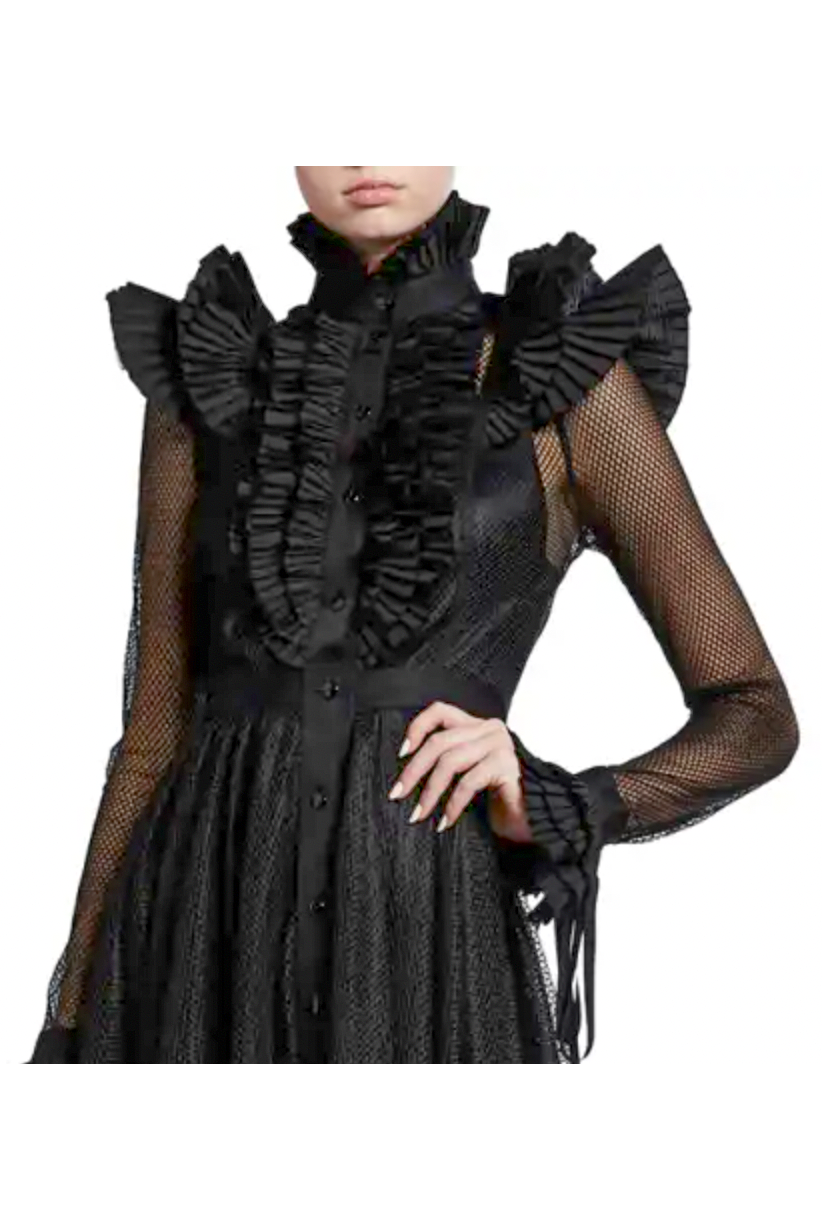 Unttld Black Ruffle Fishnet Victorian Blouse